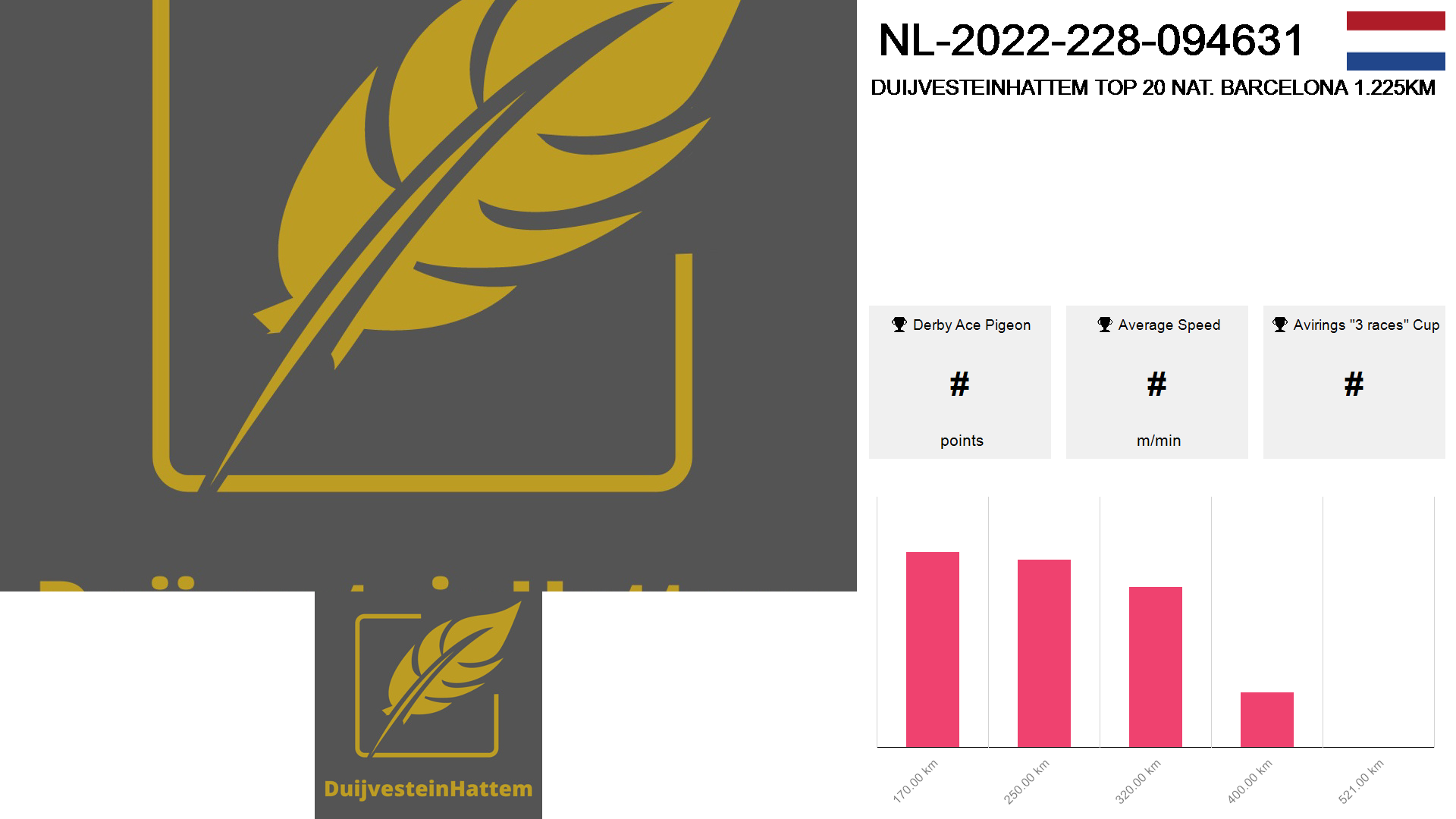 | Race | Position | Number of pigeons | Percent | Speed | Distance |