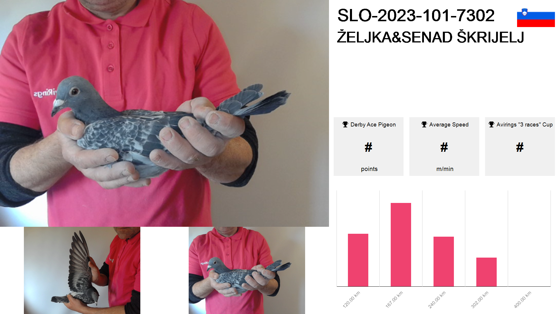 | Race | Position | Number of pigeons | Percent | Speed | Distance |