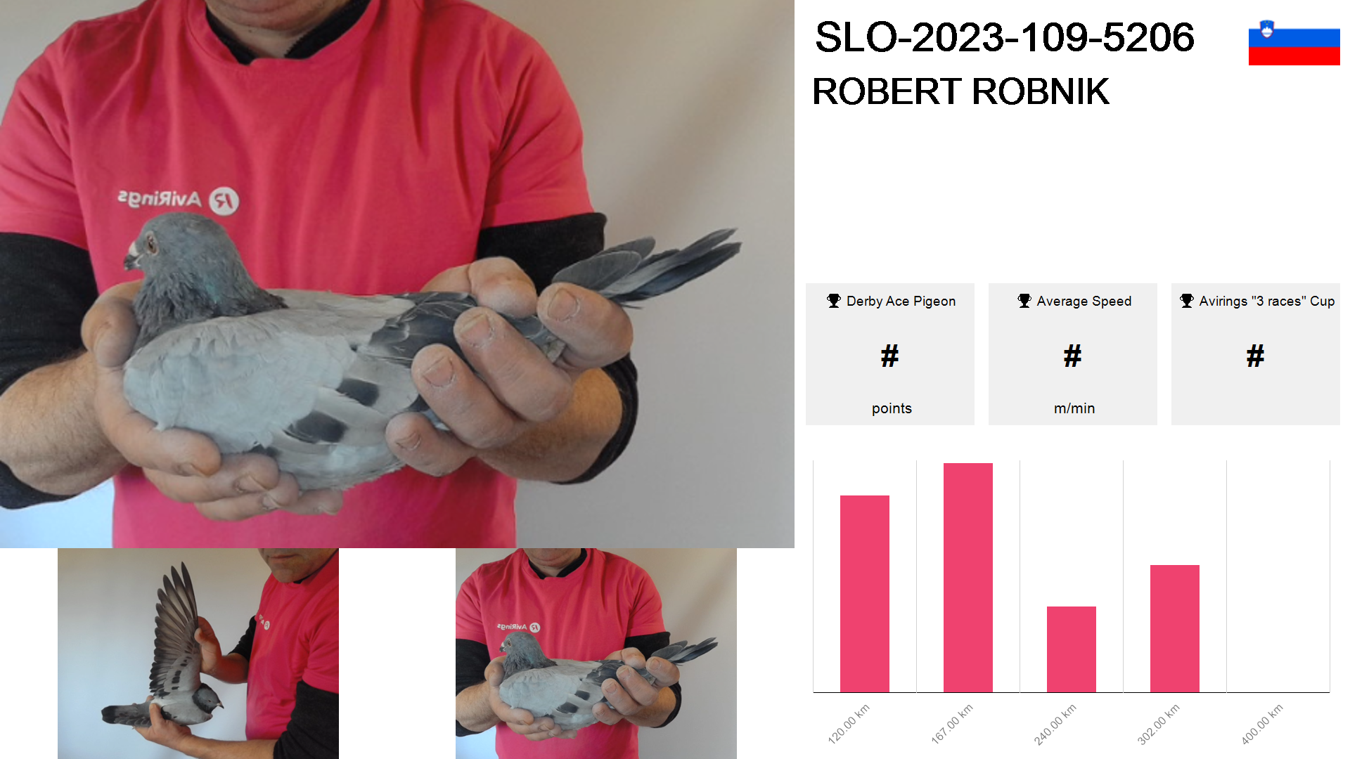 | Race | Position | Number of pigeons | Percent | Speed | Distance |