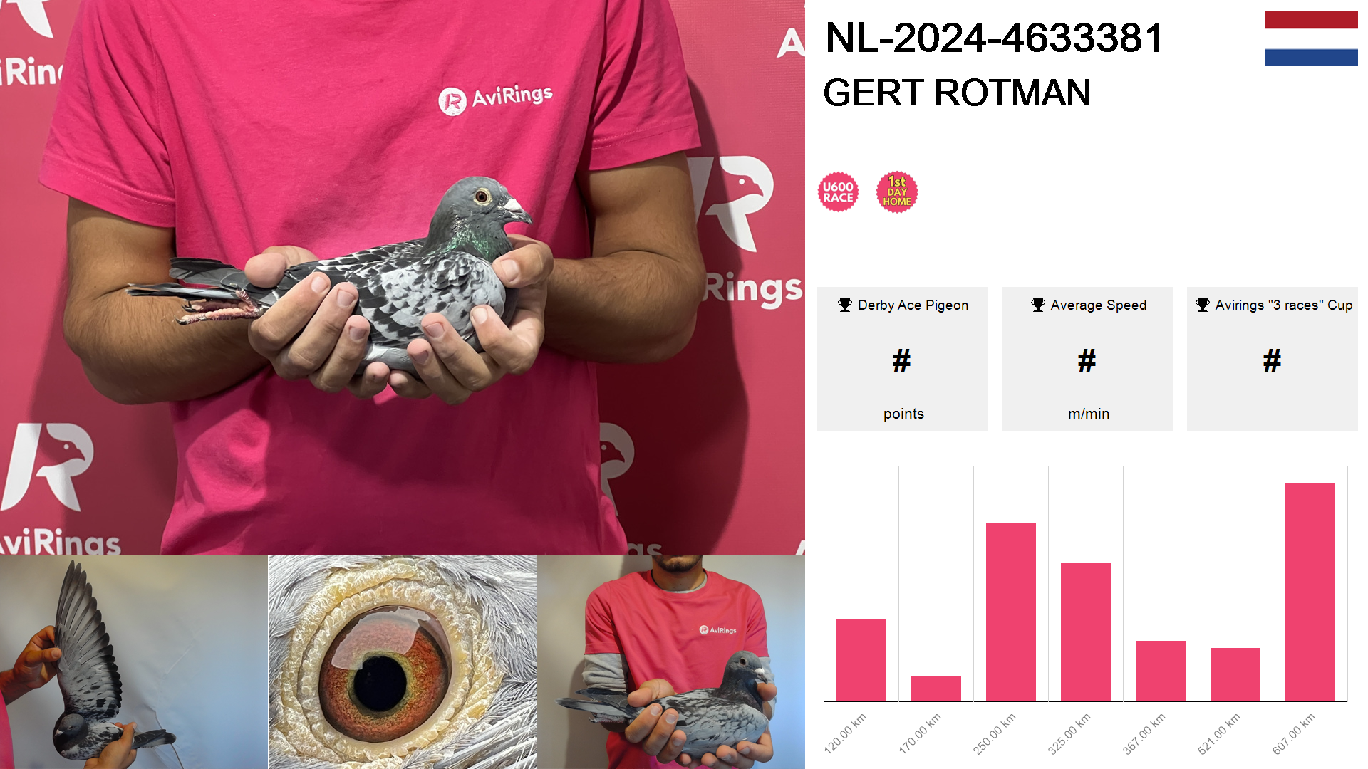 | Race | Position | Number of pigeons | Percent | Speed | Distance |