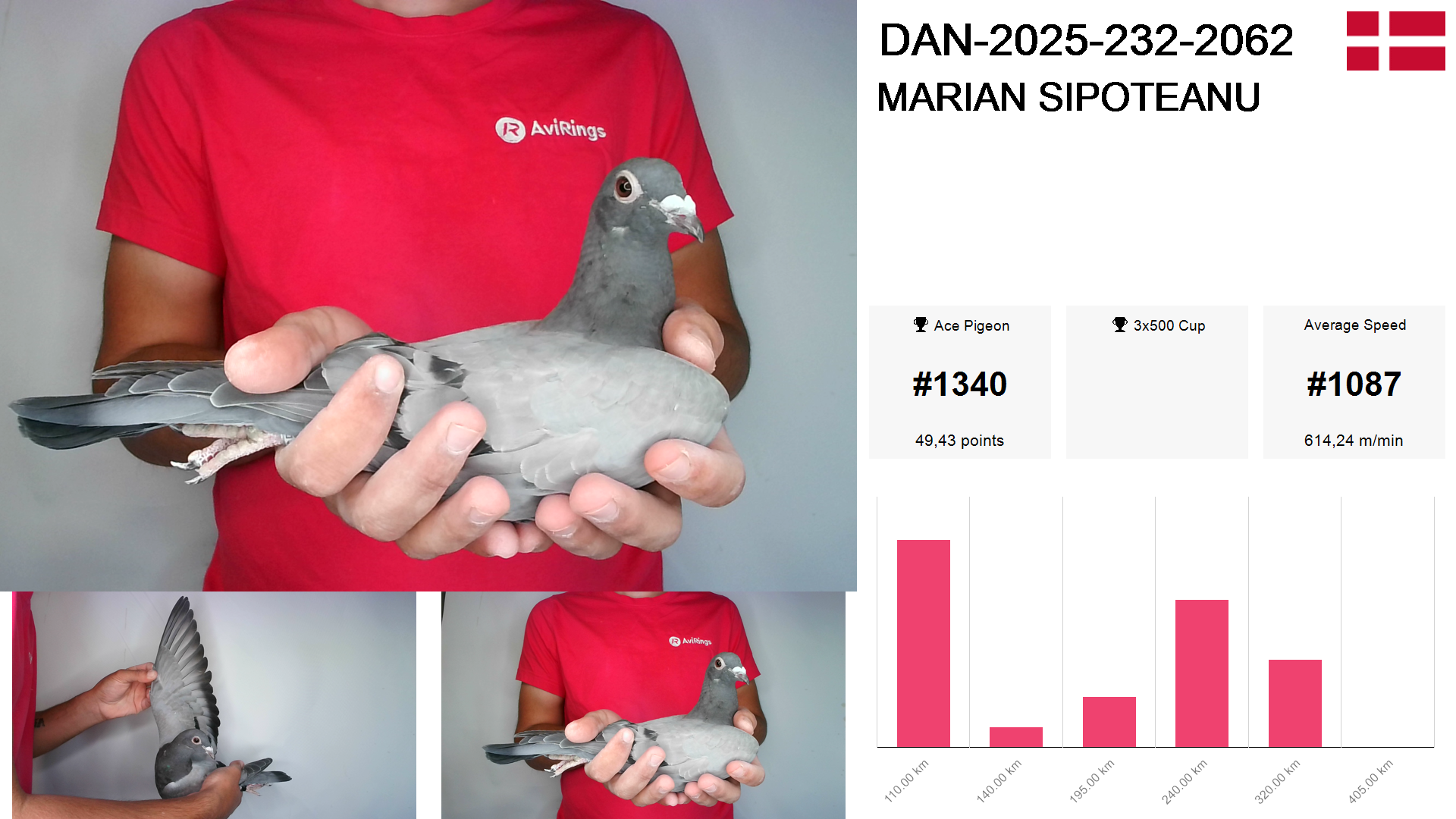 | Race | Position | Number of pigeons | Percent | Speed | Distance |