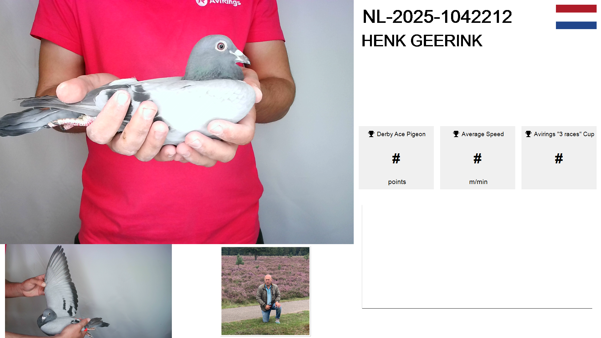 | Race | Position | Number of pigeons | Percent | Speed | Distance |