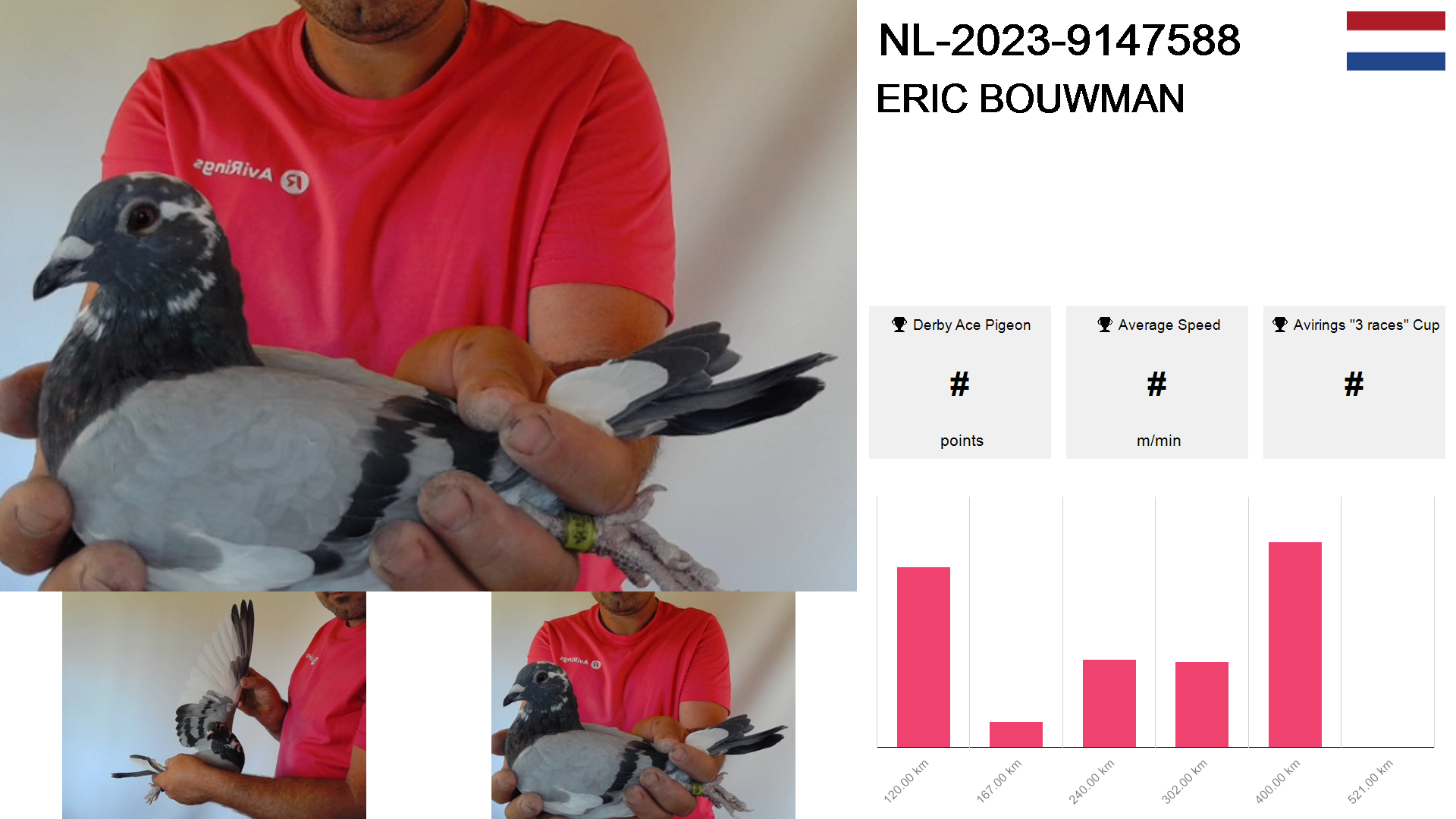 | Race | Position | Number of pigeons | Percent | Speed | Distance |