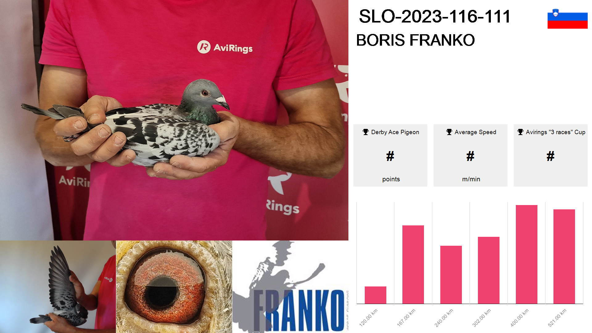 | Race | Position | Number of pigeons | Percent | Speed | Distance |