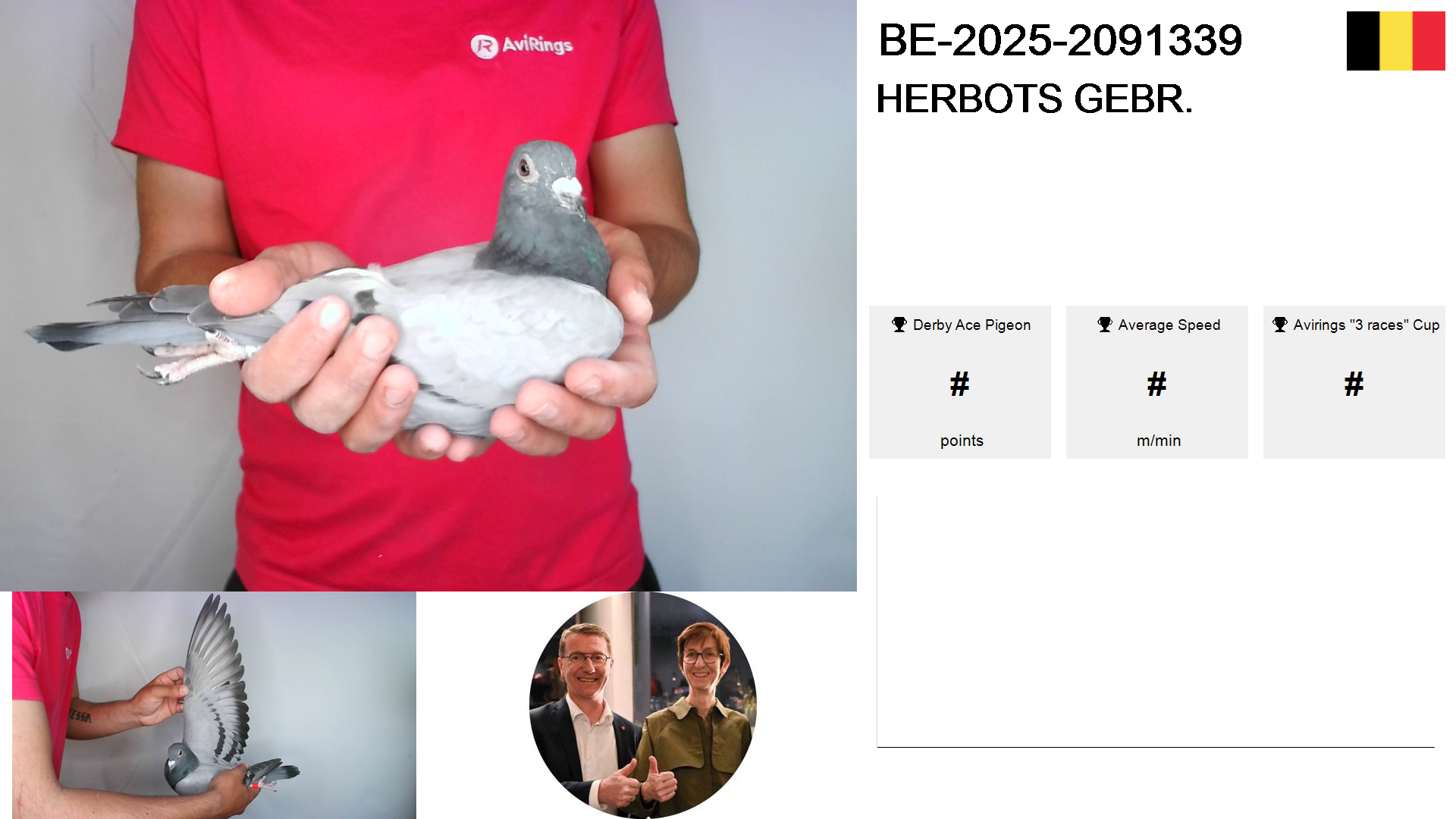 | Race | Position | Number of pigeons | Percent | Speed | Distance |