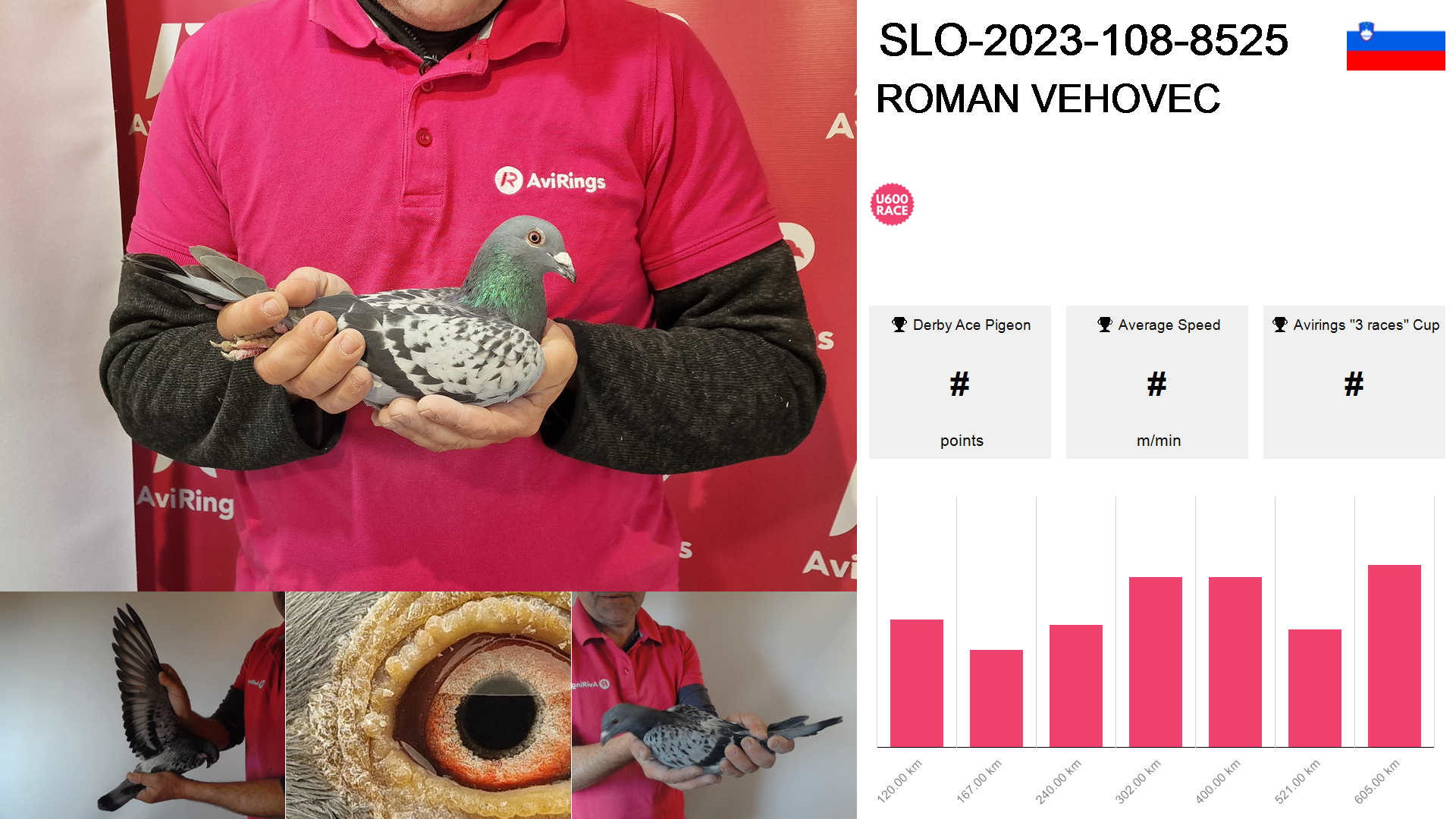| Race | Position | Number of pigeons | Percent | Speed | Distance |