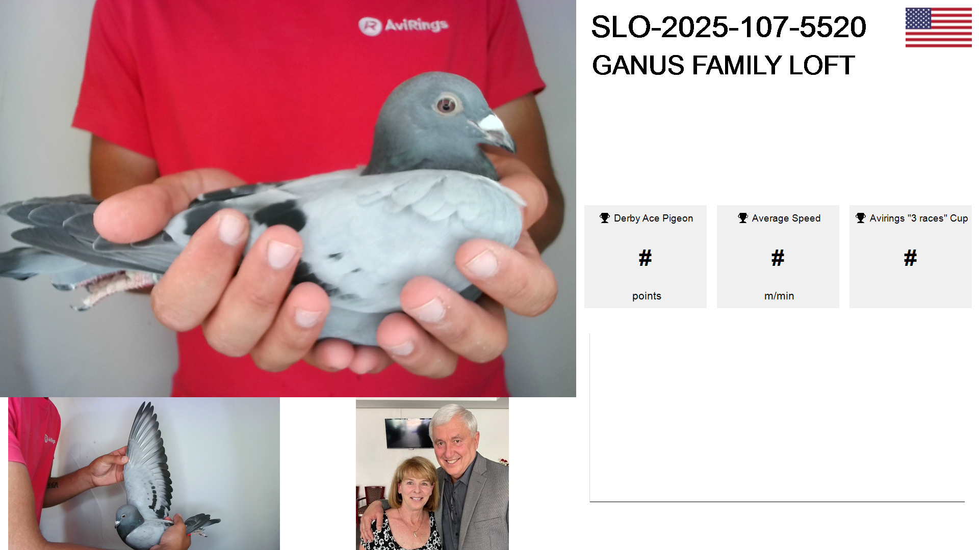 | Race | Position | Number of pigeons | Percent | Speed | Distance |