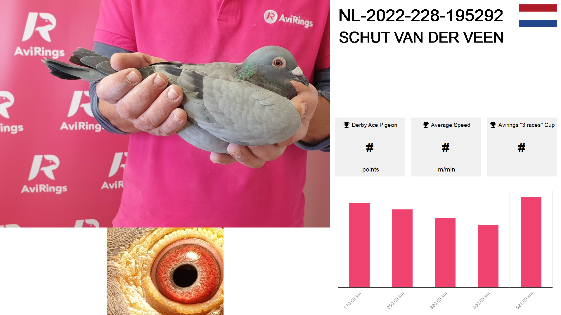 | Race | Position | Number of pigeons | Percent | Speed | Distance |