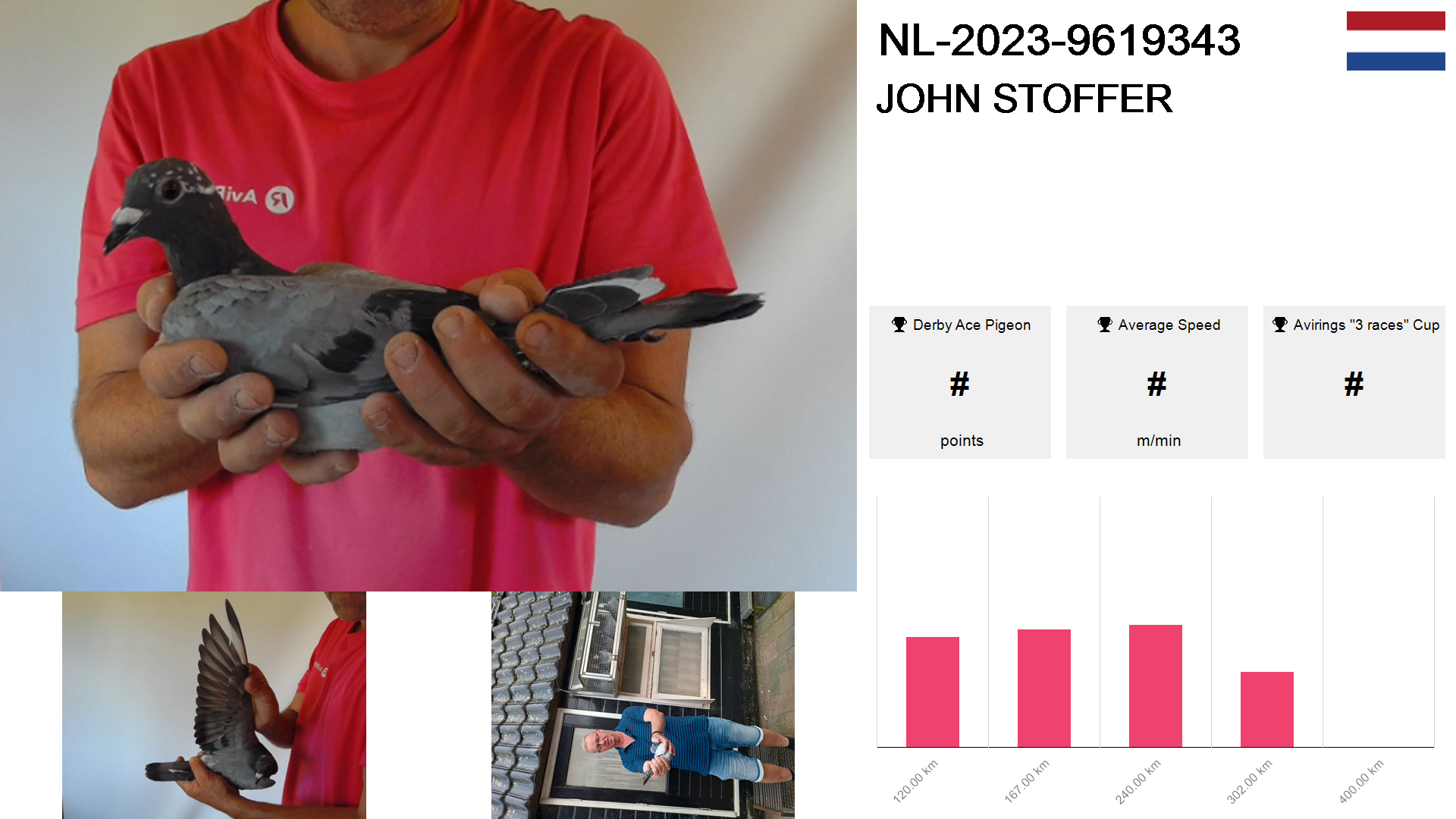 | Race | Position | Number of pigeons | Percent | Speed | Distance |