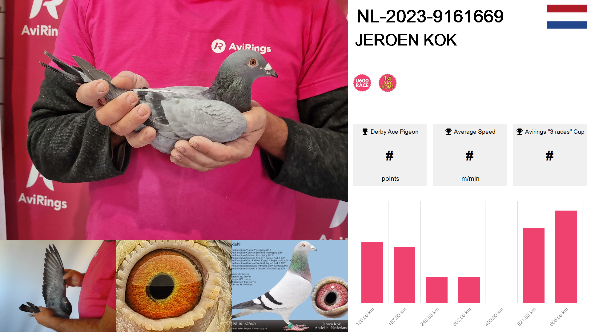 | Race | Position | Number of pigeons | Percent | Speed | Distance |