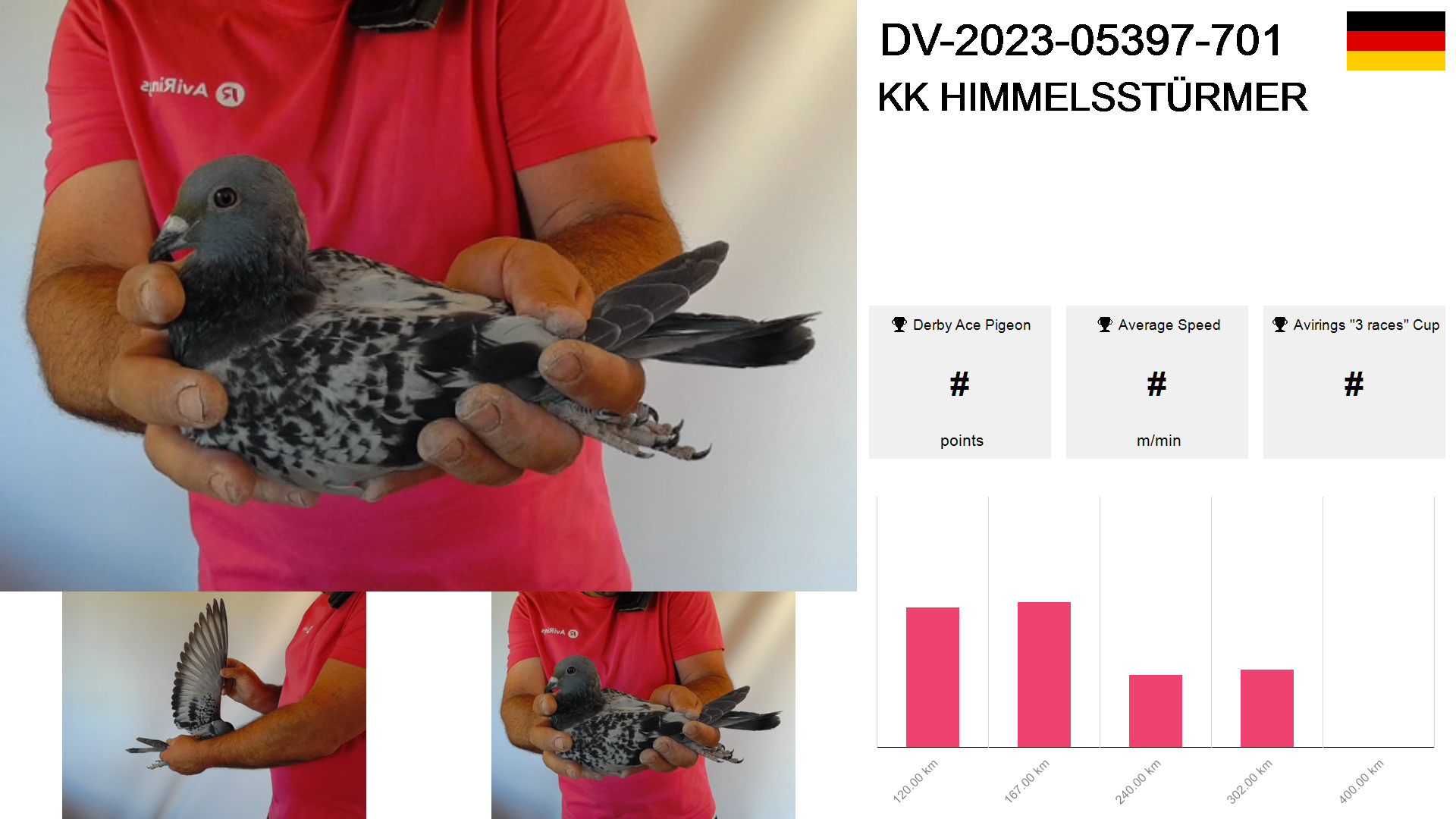 | Race | Position | Number of pigeons | Percent | Speed | Distance |