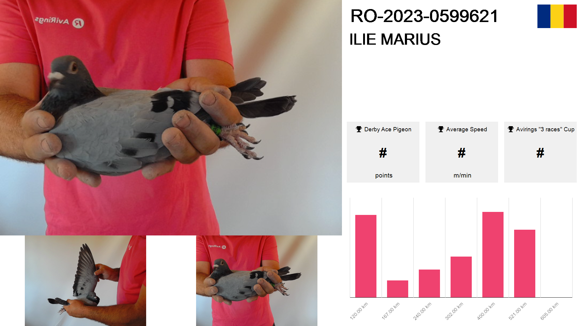 | Race | Position | Number of pigeons | Percent | Speed | Distance |