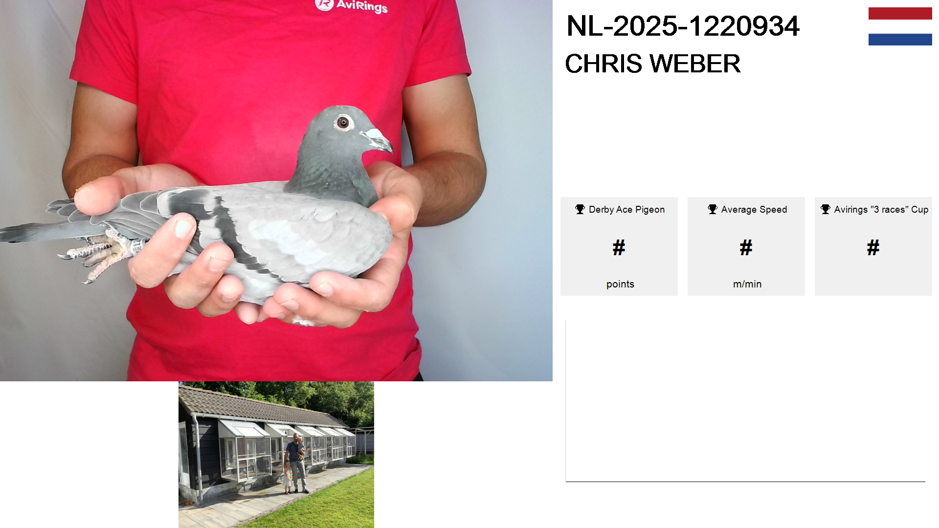 | Race | Position | Number of pigeons | Percent | Speed | Distance |