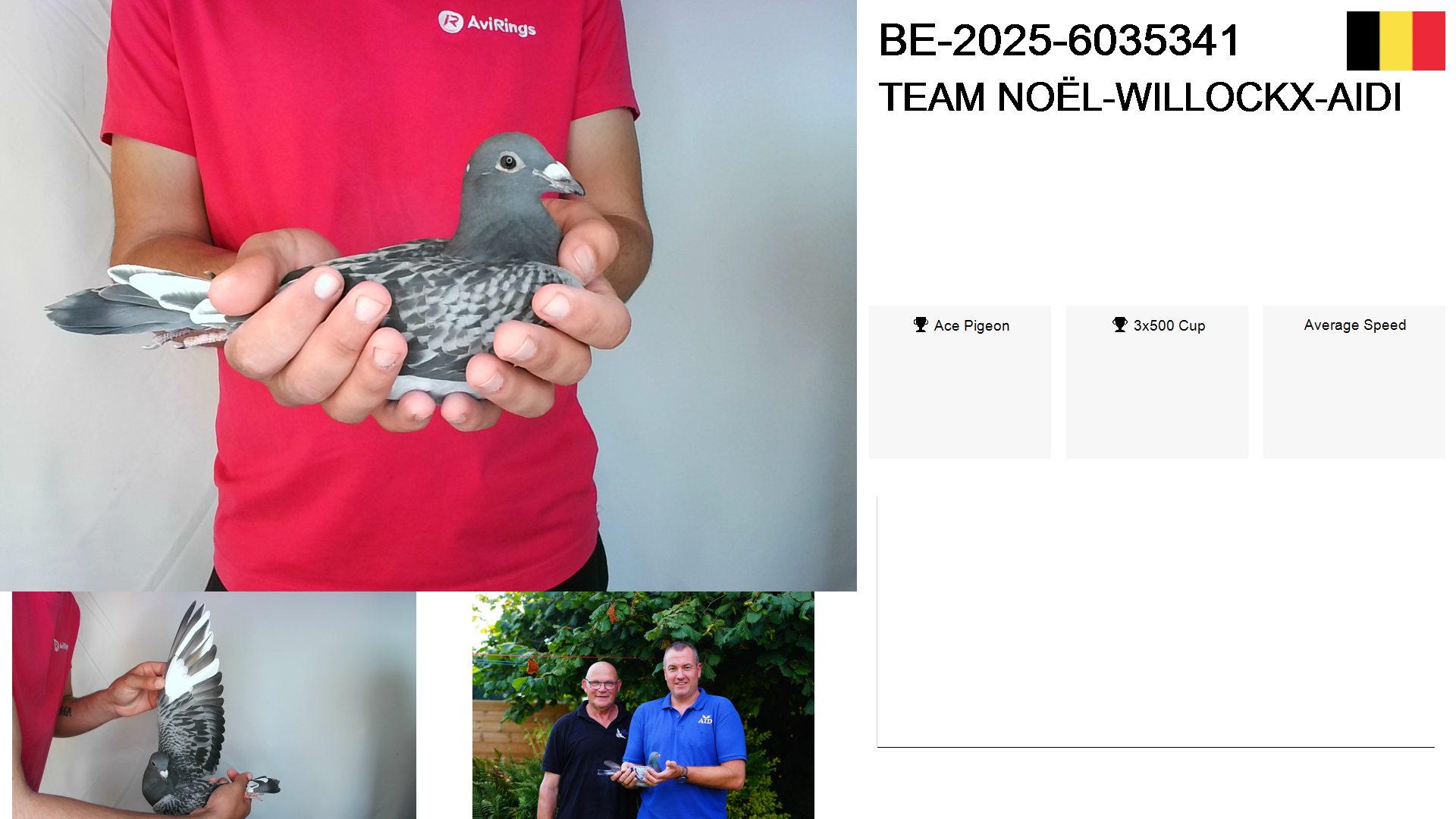 | Race | Position | Number of pigeons | Percent | Speed | Distance |