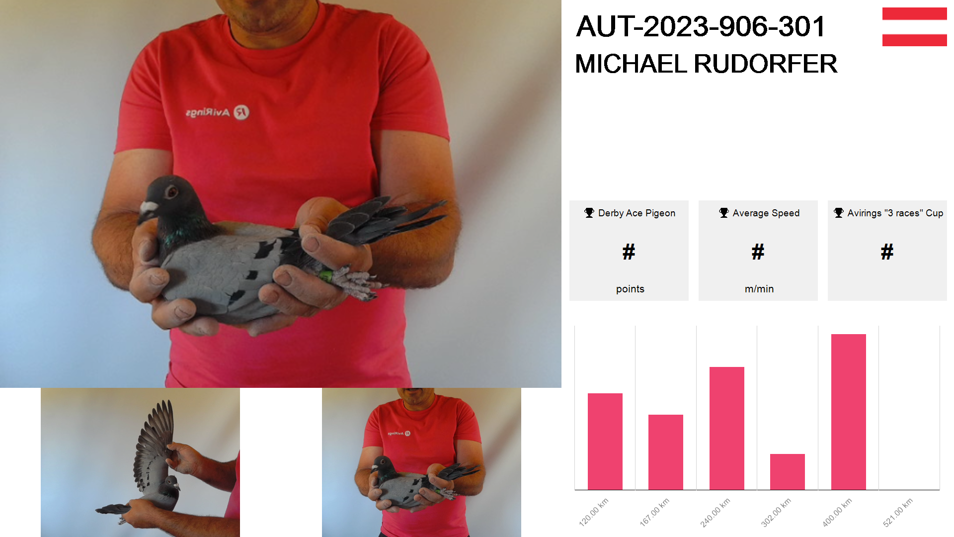 | Race | Position | Number of pigeons | Percent | Speed | Distance |