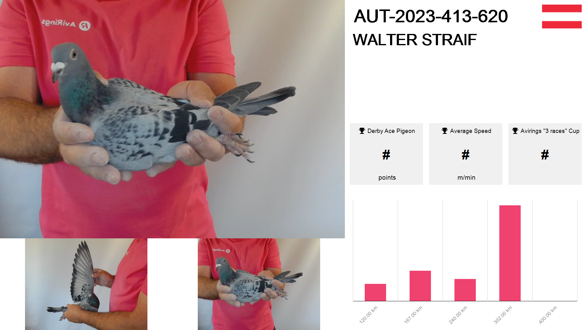 | Race | Position | Number of pigeons | Percent | Speed | Distance |