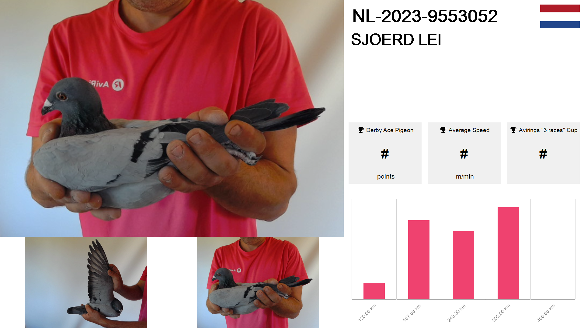 | Race | Position | Number of pigeons | Percent | Speed | Distance |
