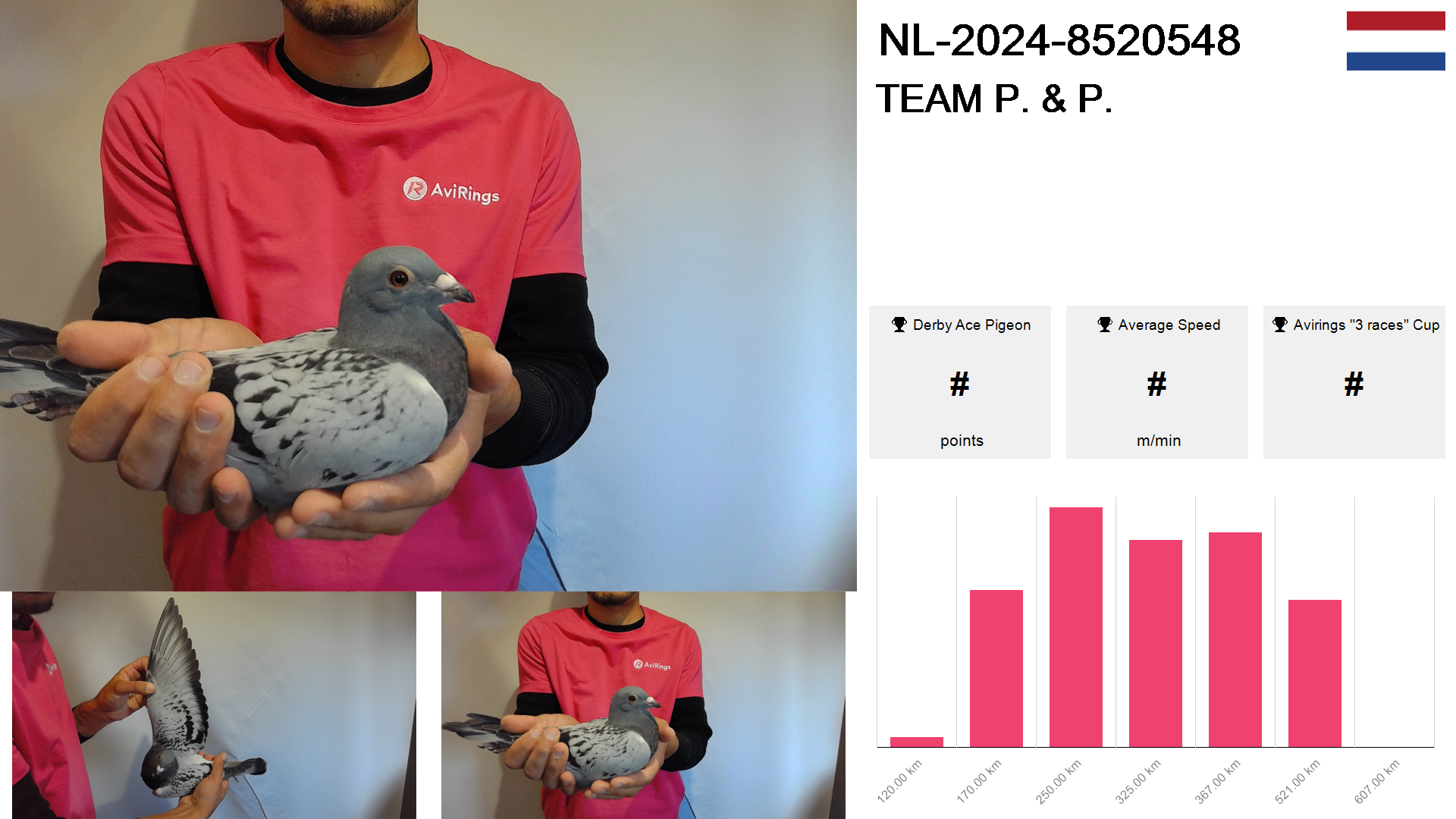 | Race | Position | Number of pigeons | Percent | Speed | Distance |