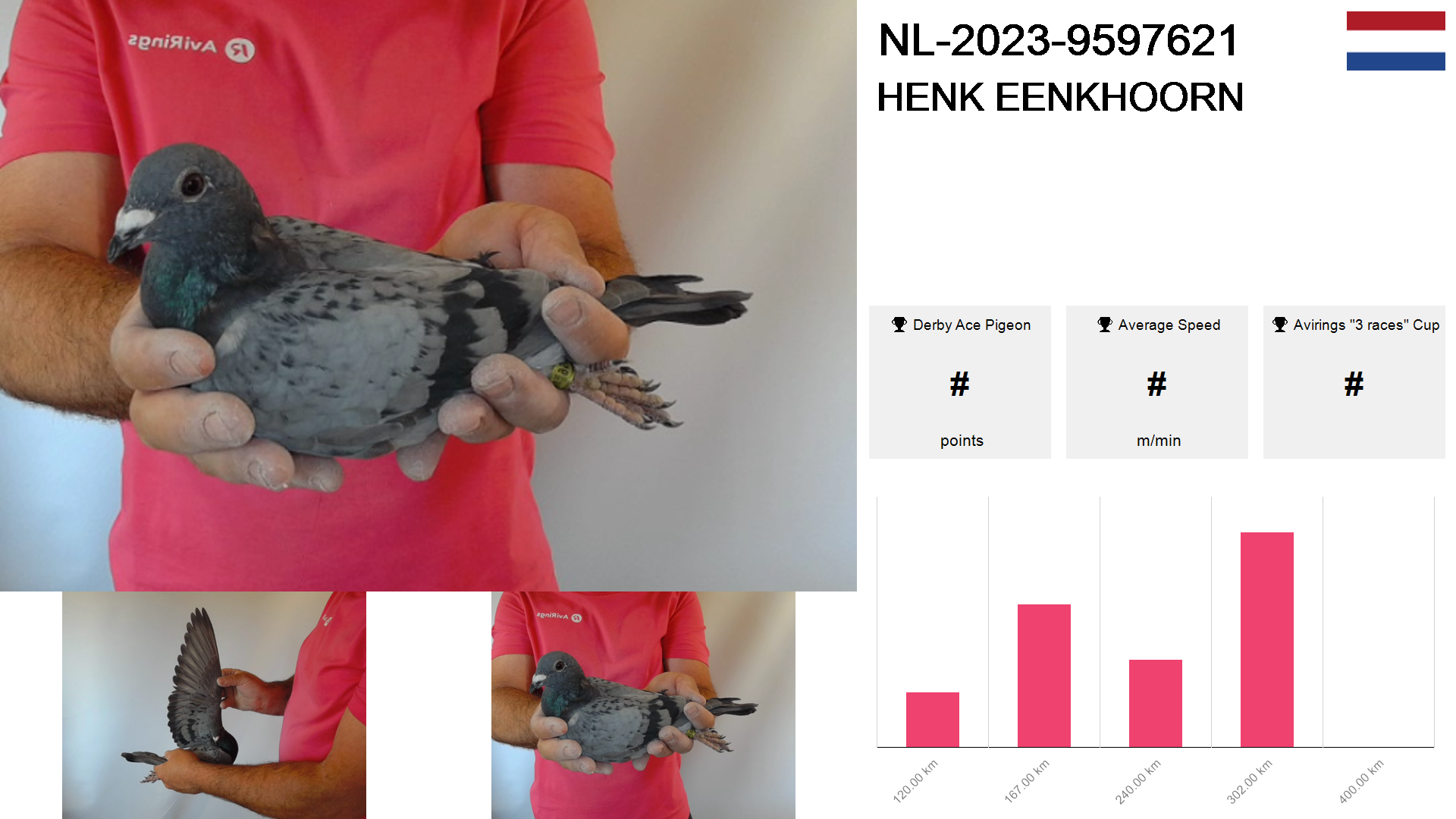 | Race | Position | Number of pigeons | Percent | Speed | Distance |
