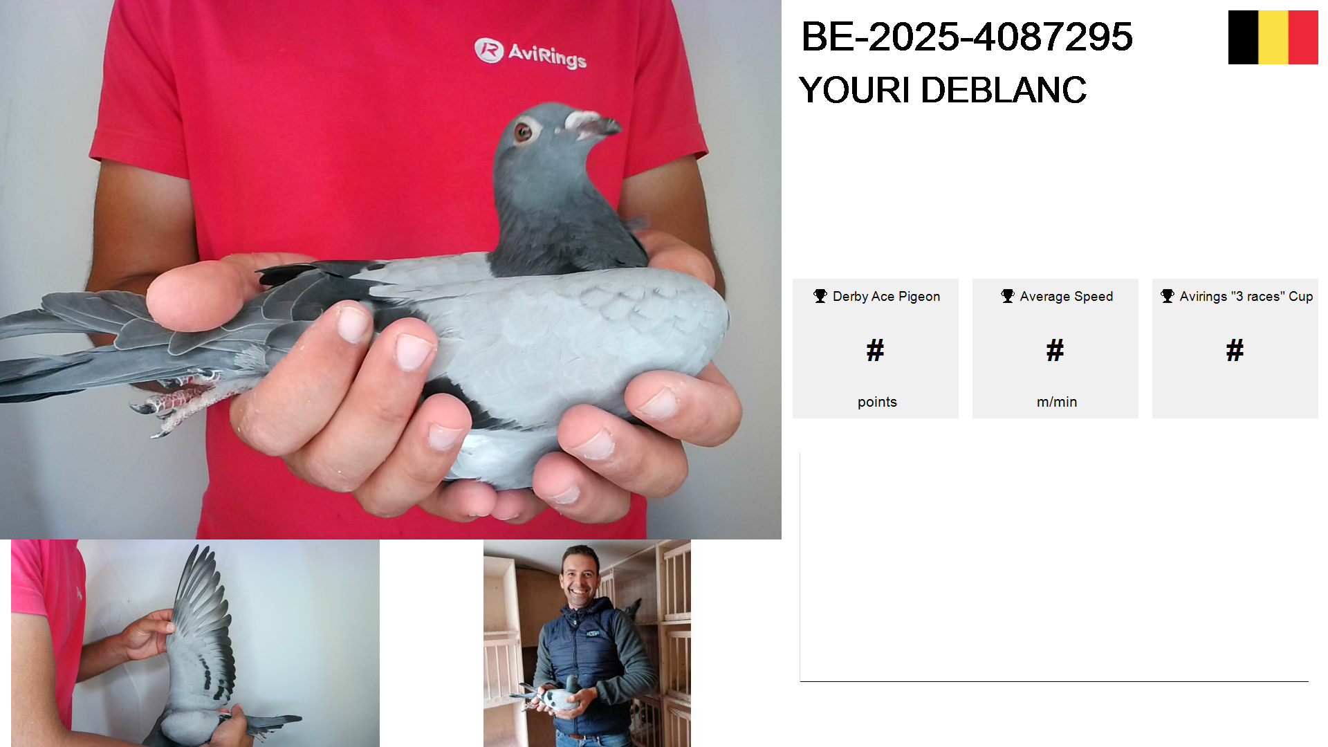 | Race | Position | Number of pigeons | Percent | Speed | Distance |