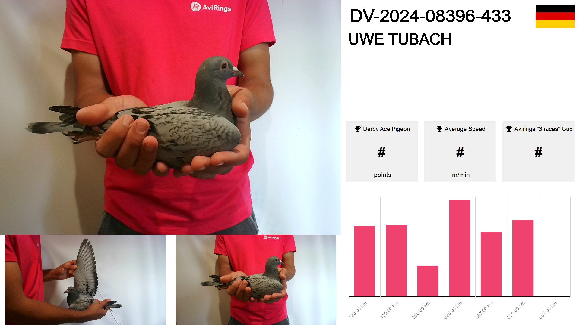 | Race | Position | Number of pigeons | Percent | Speed | Distance |