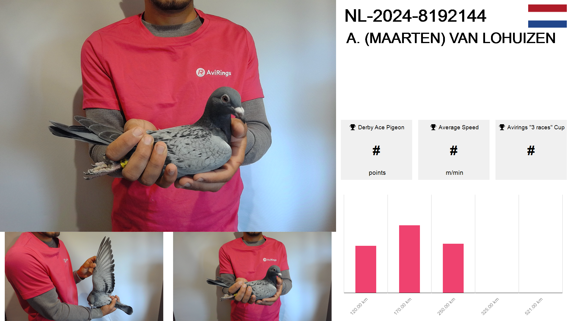 | Race | Position | Number of pigeons | Percent | Speed | Distance |
