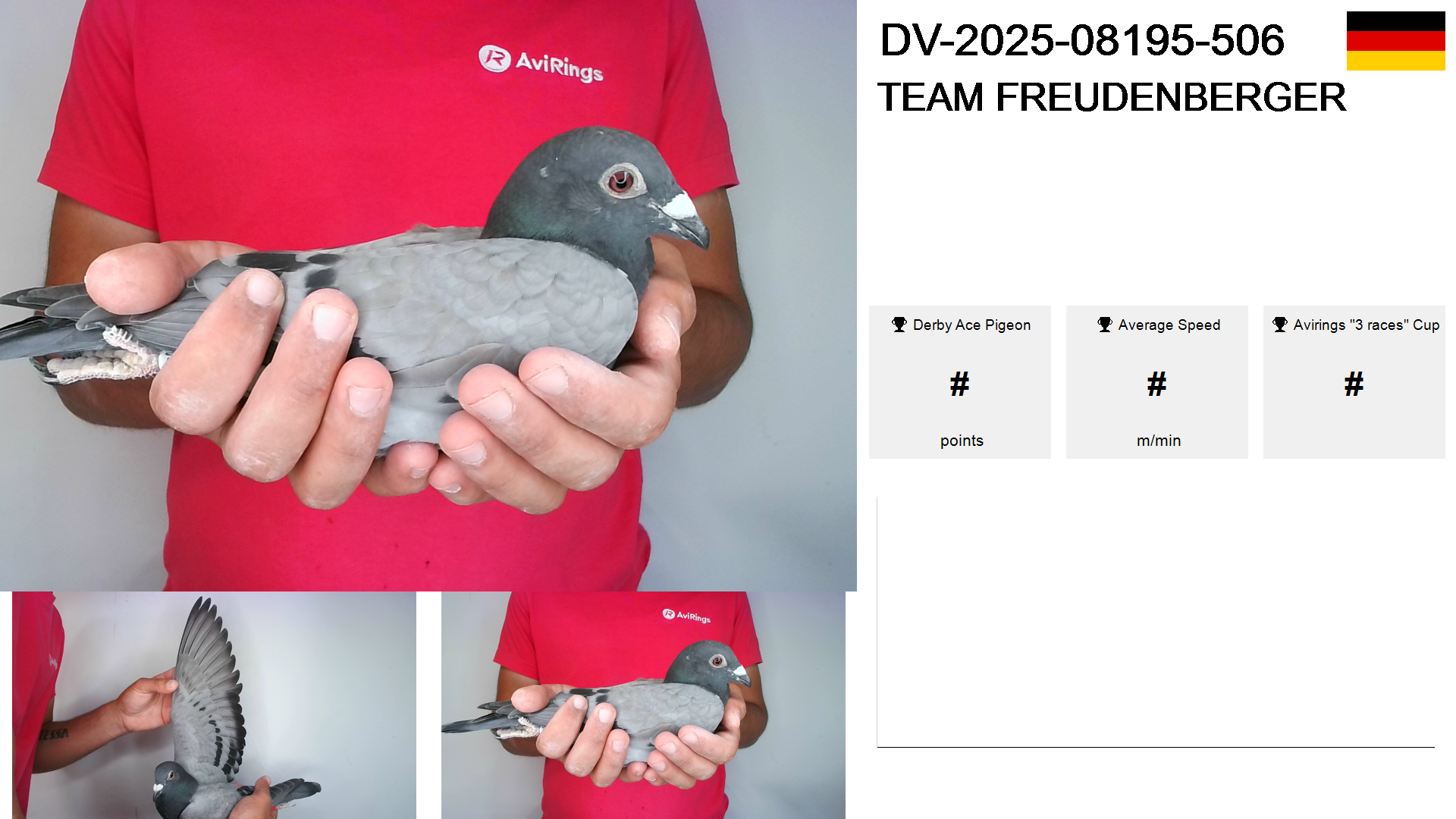 | Race | Position | Number of pigeons | Percent | Speed | Distance |