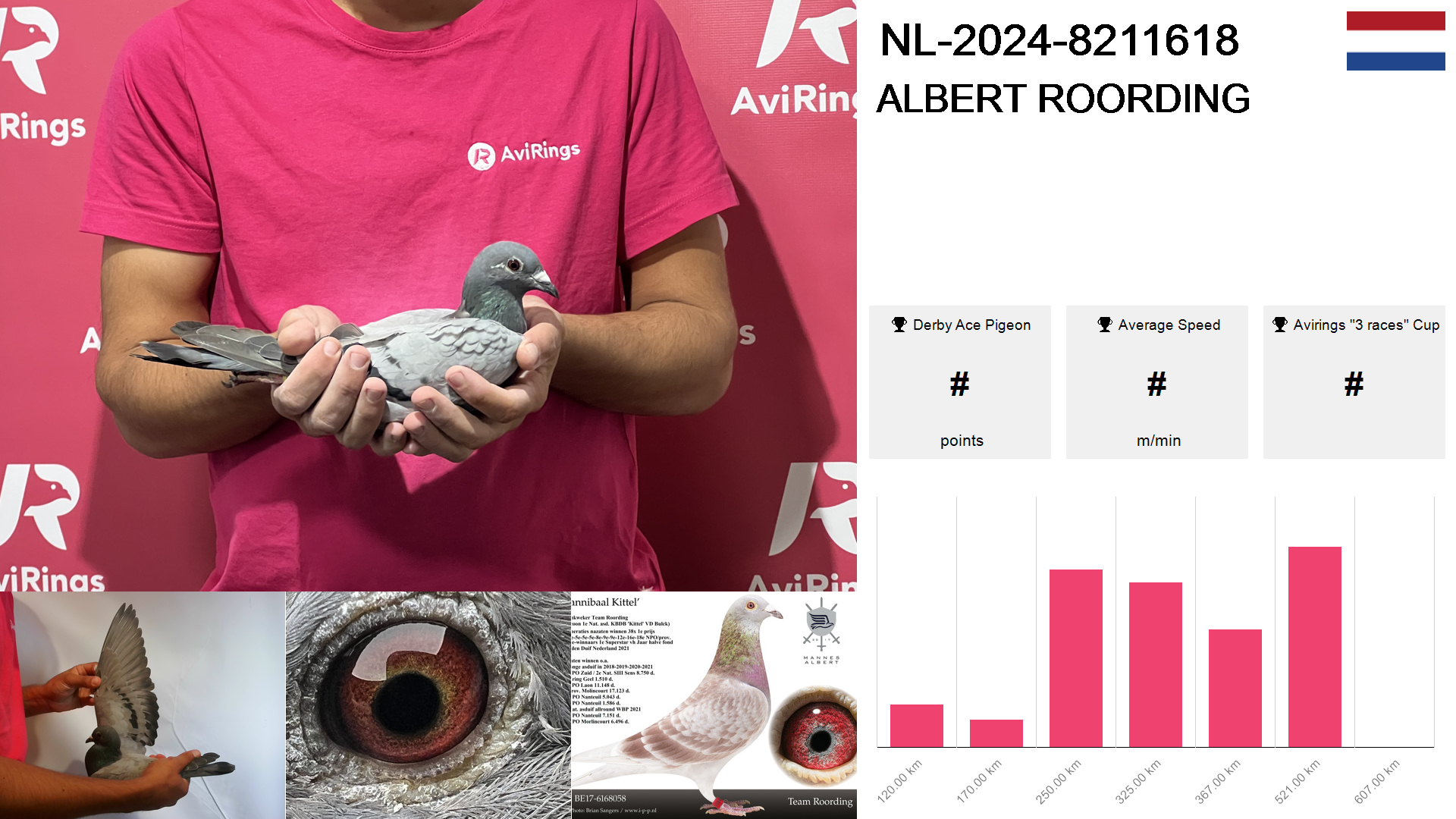 | Race | Position | Number of pigeons | Percent | Speed | Distance |