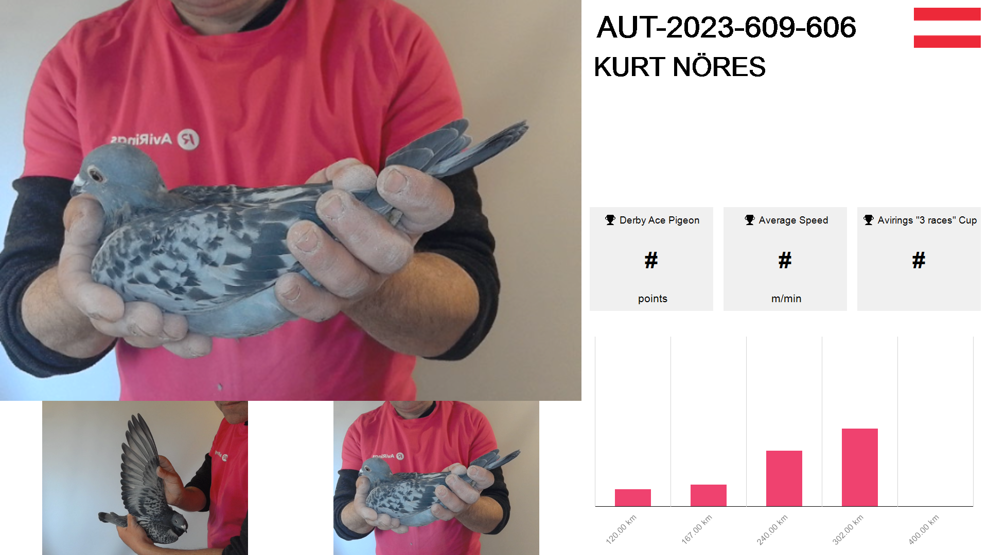 | Race | Position | Number of pigeons | Percent | Speed | Distance |