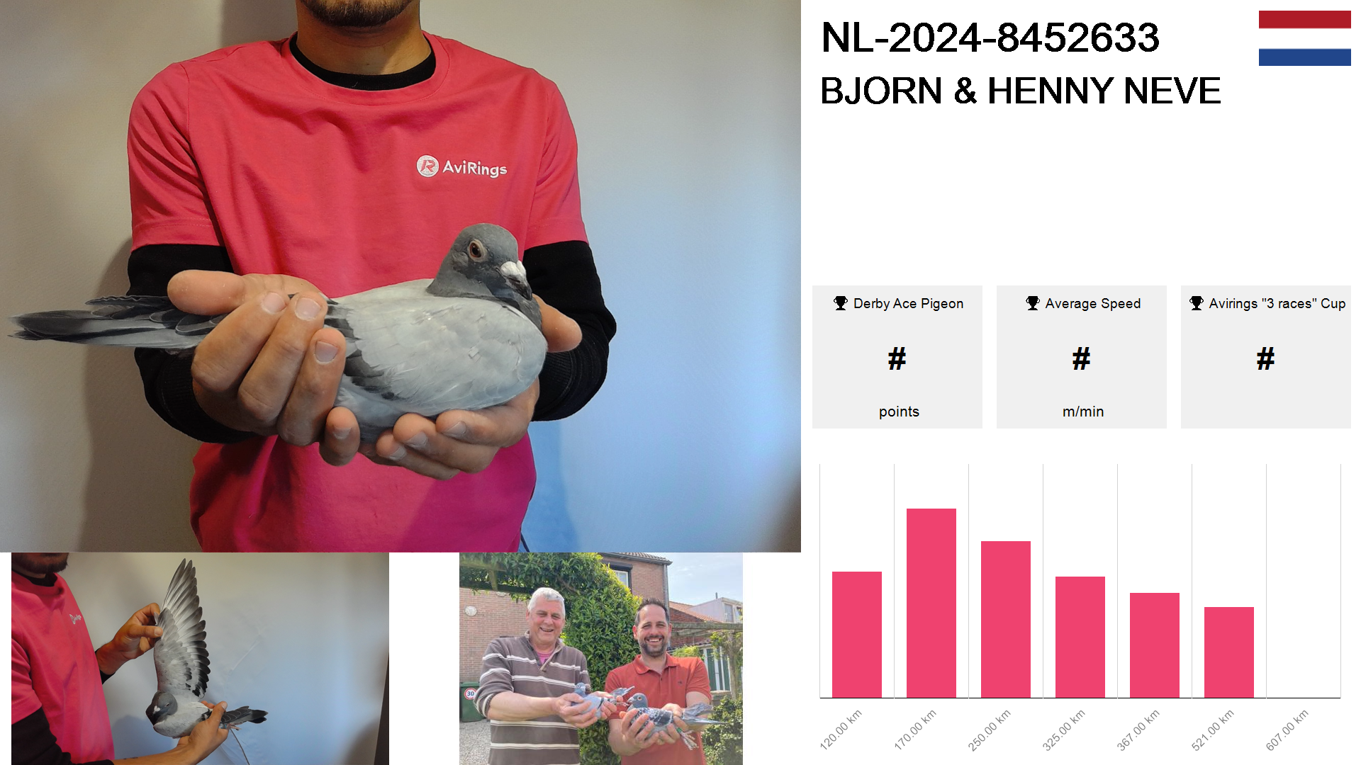 | Race | Position | Number of pigeons | Percent | Speed | Distance |