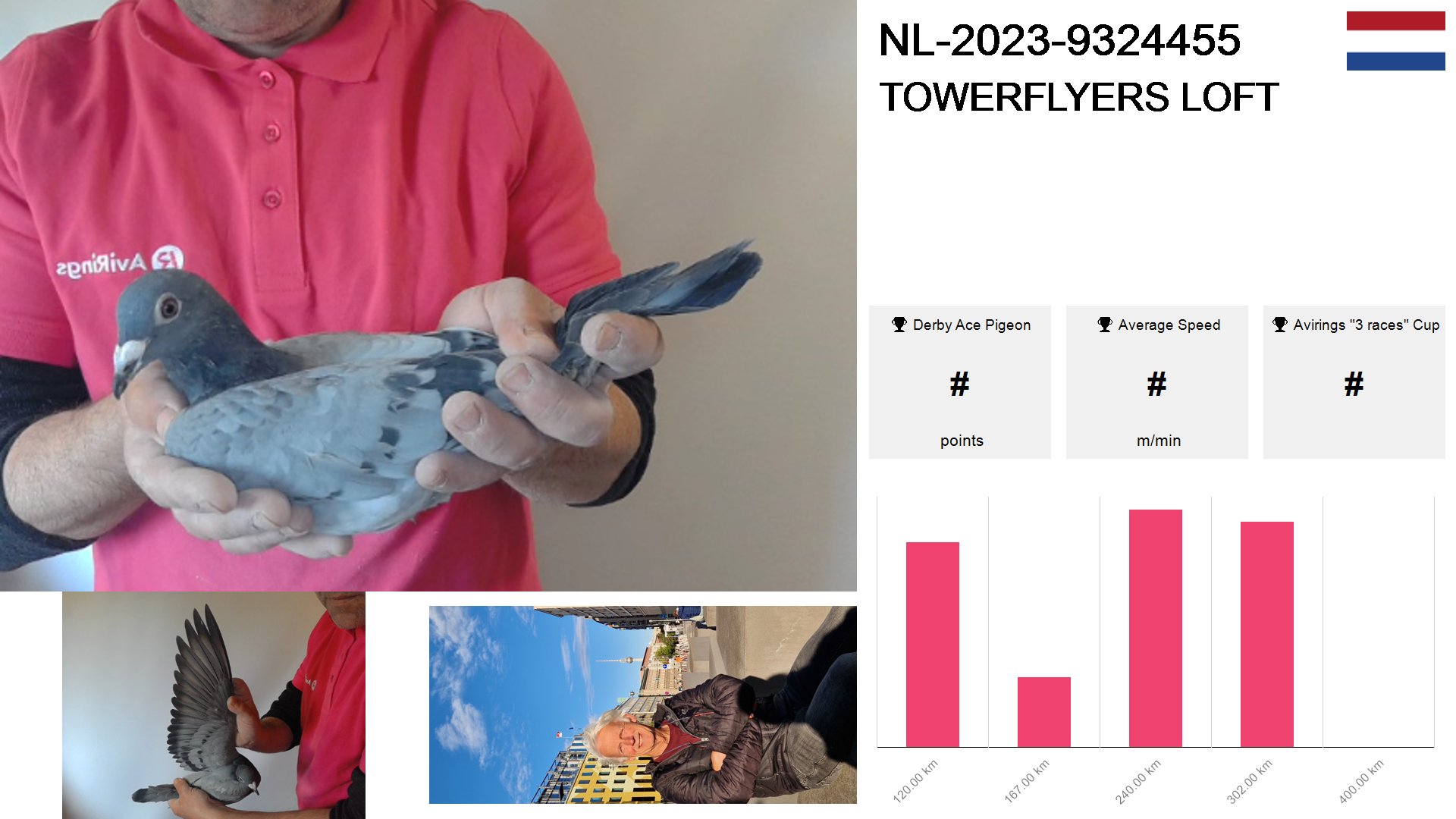 | Race | Position | Number of pigeons | Percent | Speed | Distance |