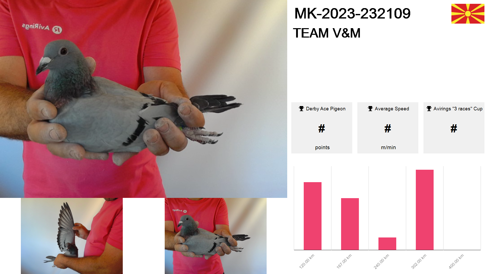 | Race | Position | Number of pigeons | Percent | Speed | Distance |