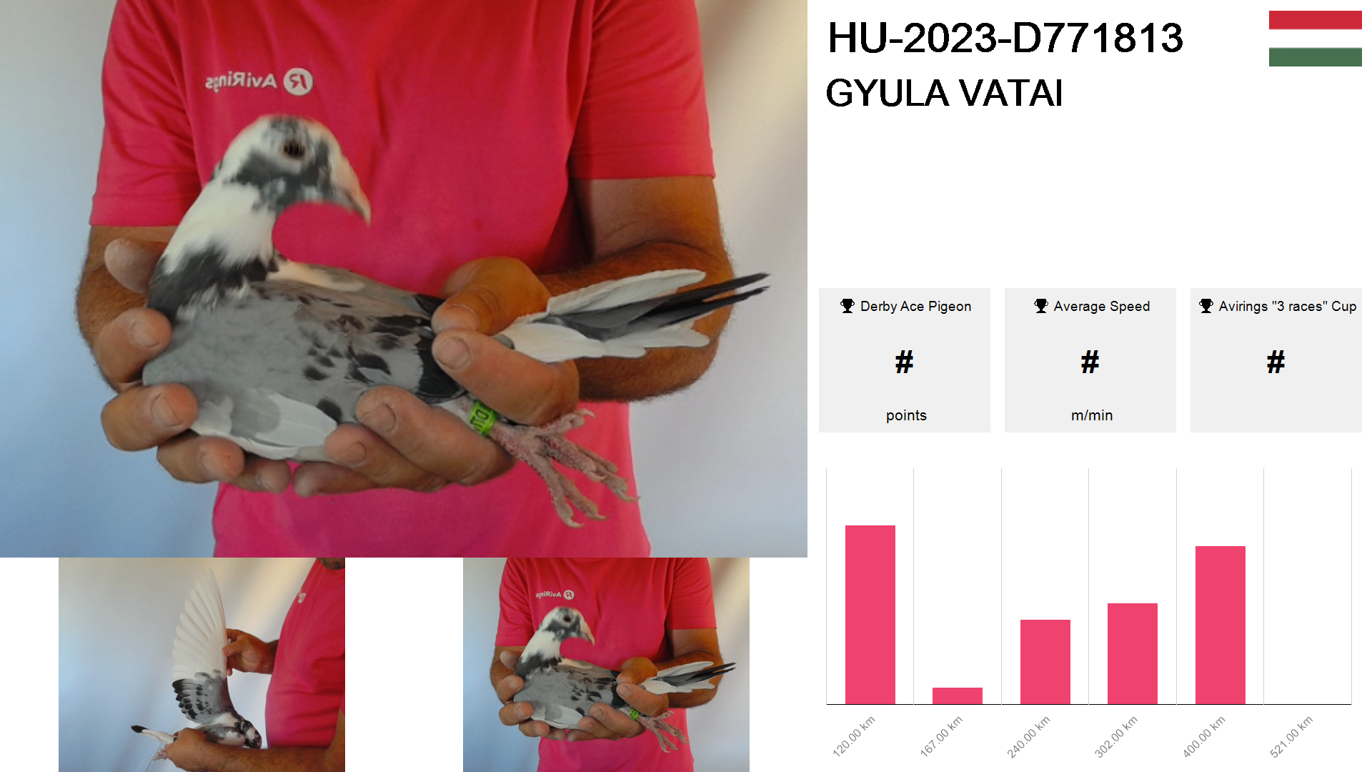 | Race | Position | Number of pigeons | Percent | Speed | Distance |