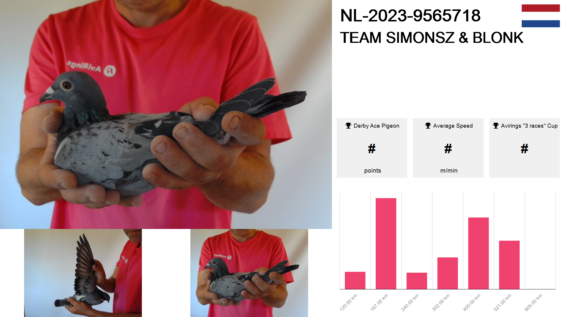 | Race | Position | Number of pigeons | Percent | Speed | Distance |