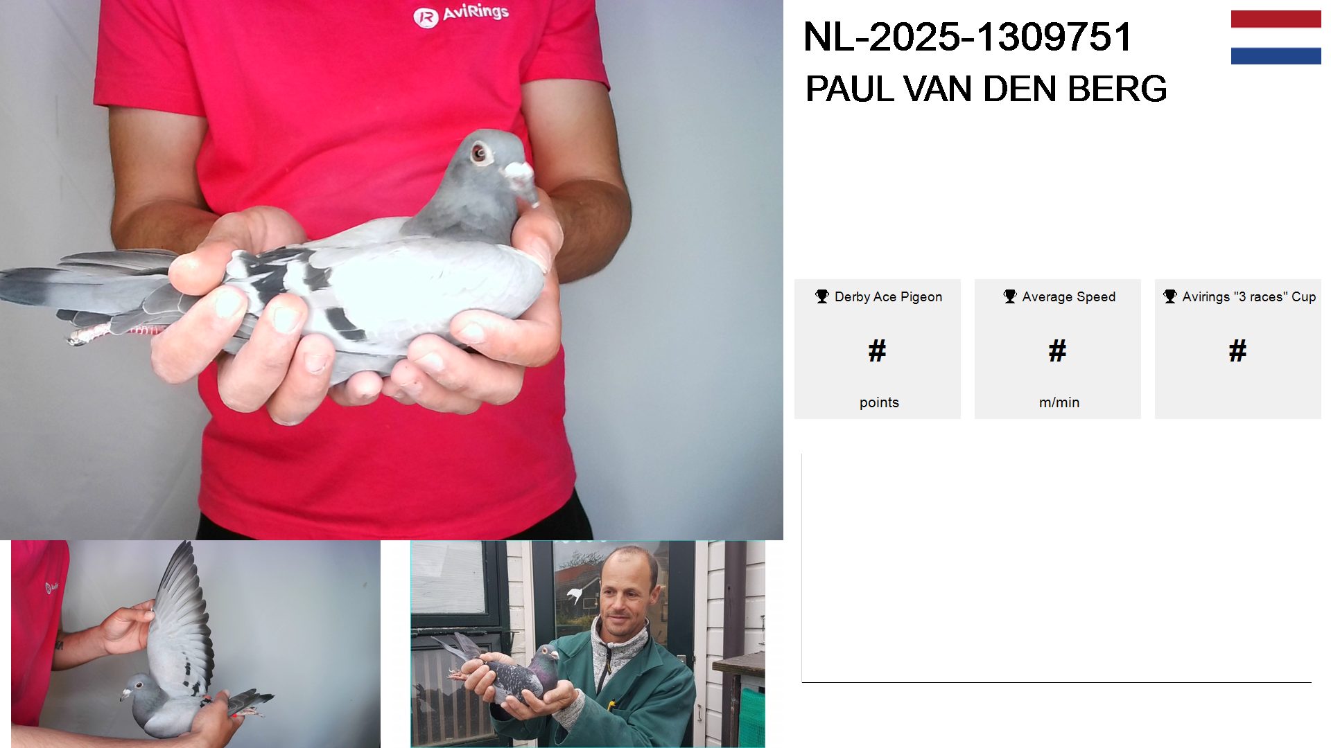 | Race | Position | Number of pigeons | Percent | Speed | Distance |