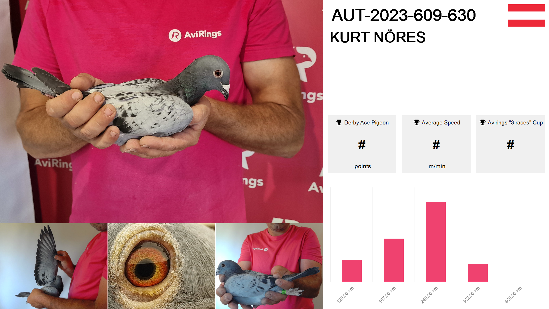 | Race | Position | Number of pigeons | Percent | Speed | Distance |