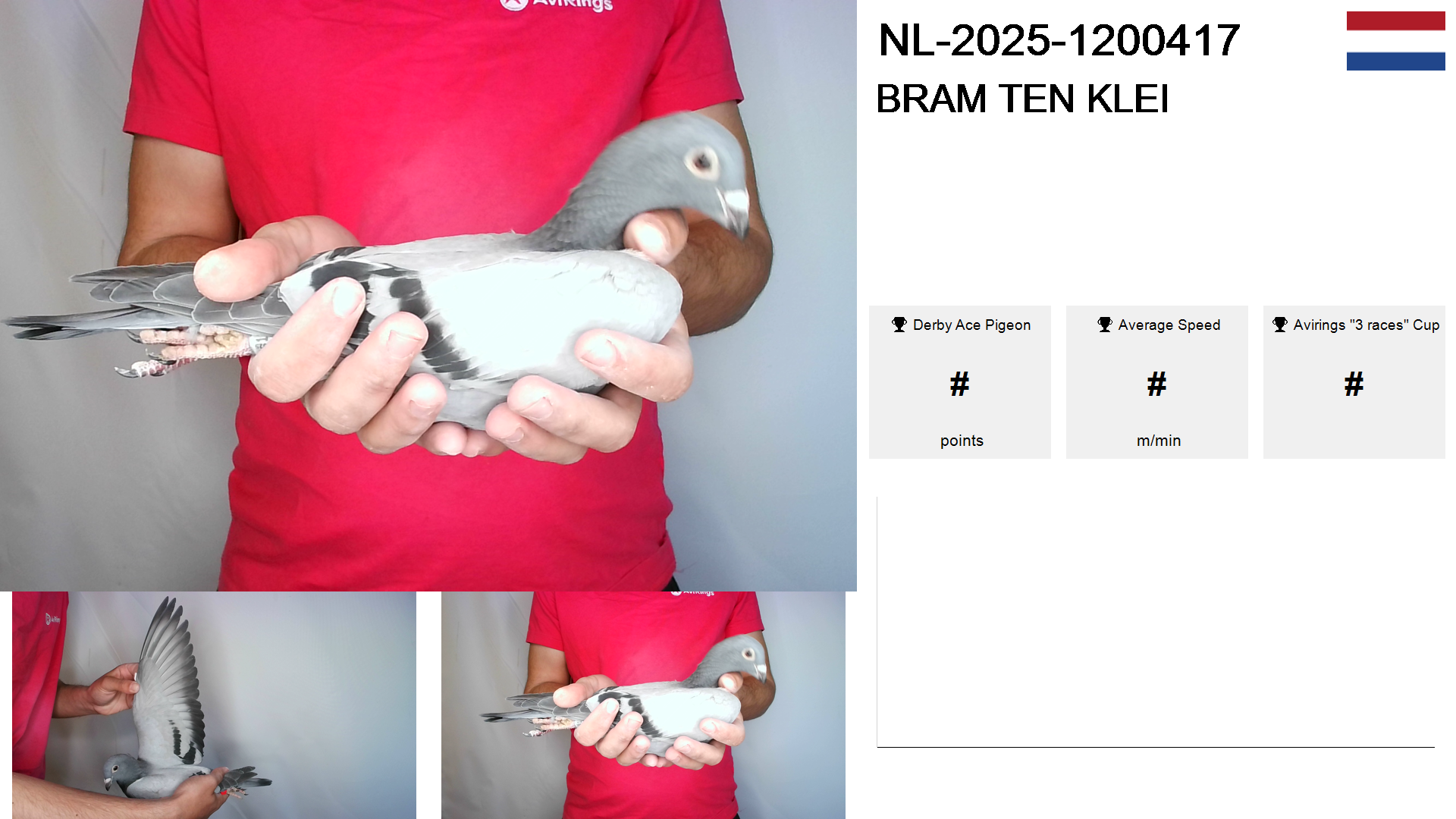 | Race | Position | Number of pigeons | Percent | Speed | Distance |