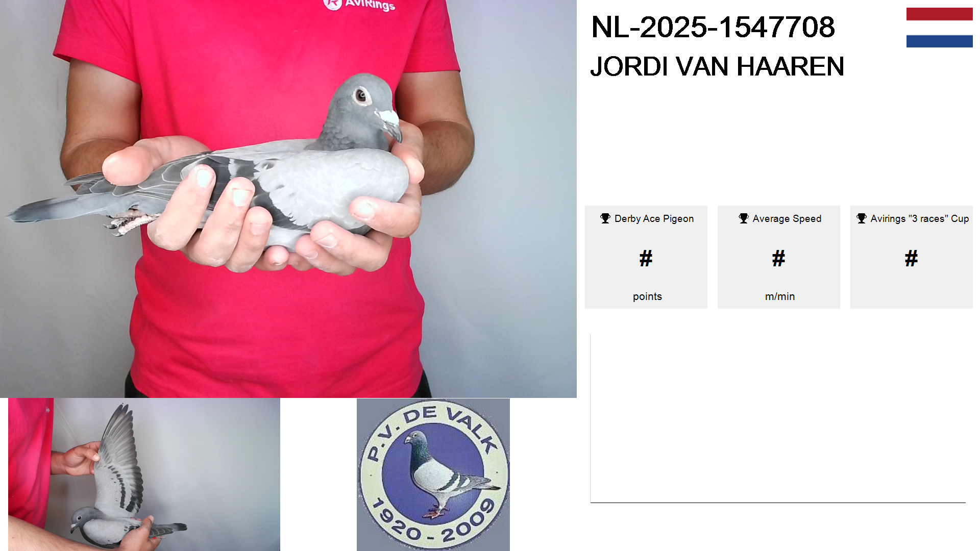 | Race | Position | Number of pigeons | Percent | Speed | Distance |