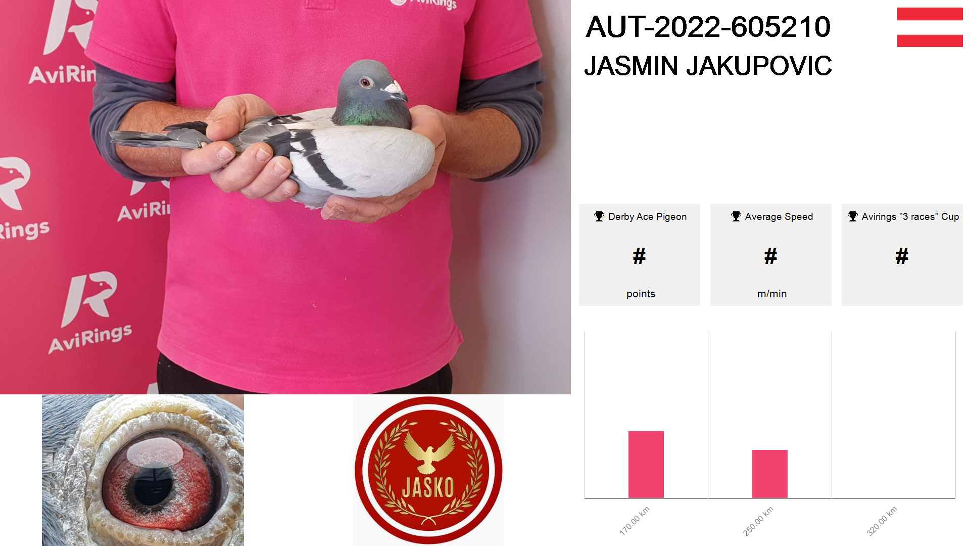 | Race | Position | Number of pigeons | Percent | Speed | Distance |