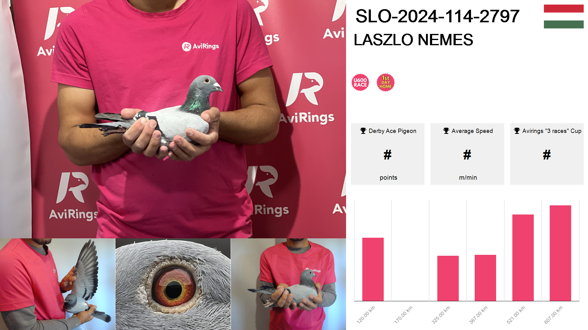 | Race | Position | Number of pigeons | Percent | Speed | Distance |
