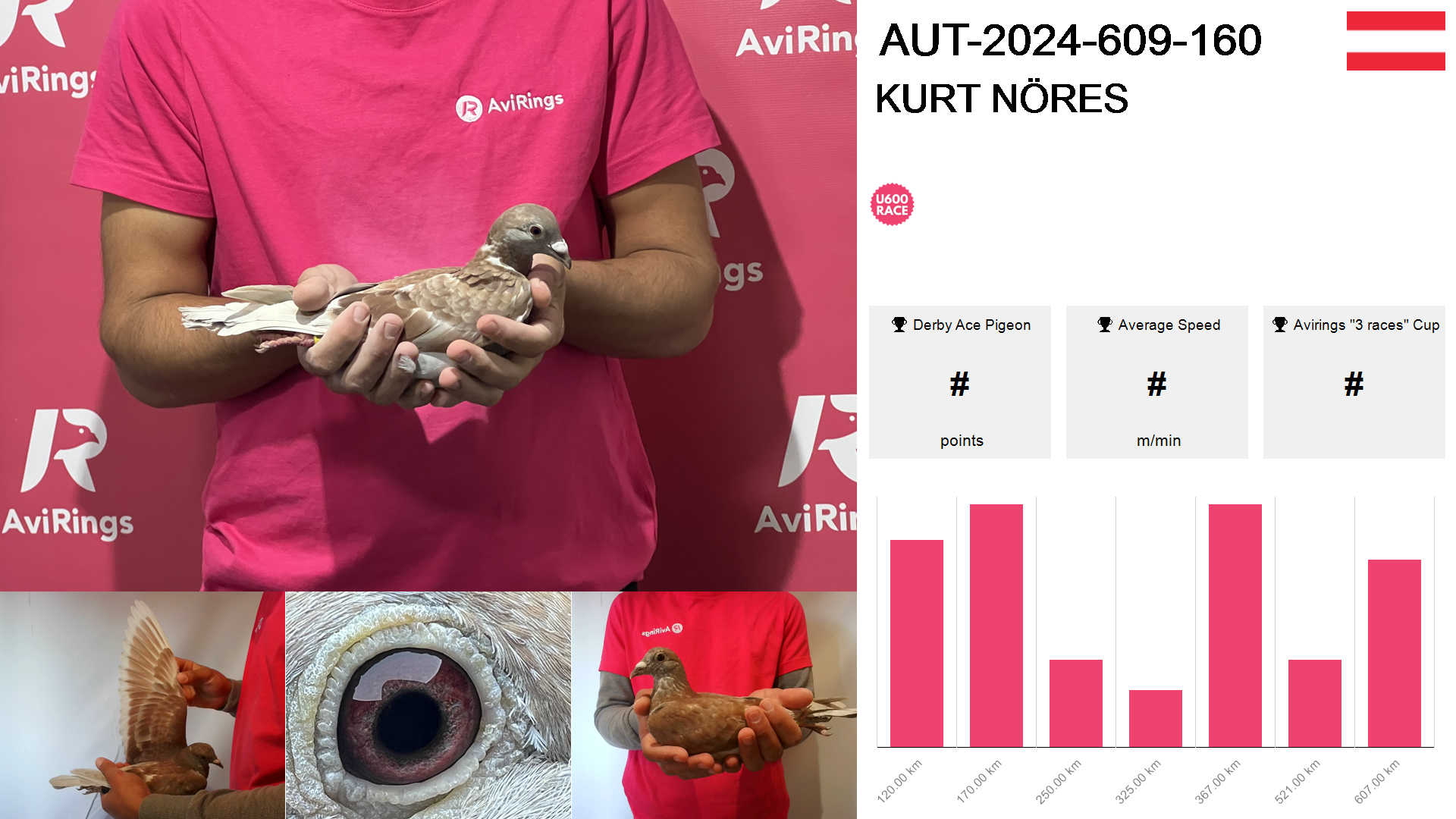 | Race | Position | Number of pigeons | Percent | Speed | Distance |