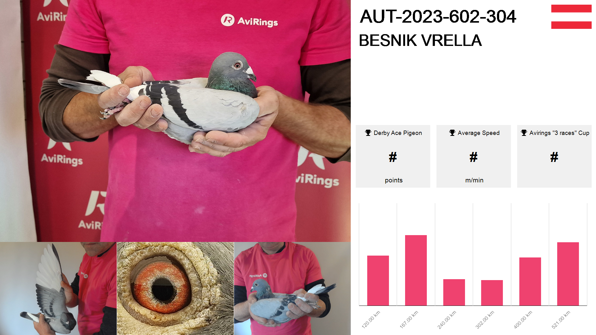 | Race | Position | Number of pigeons | Percent | Speed | Distance |