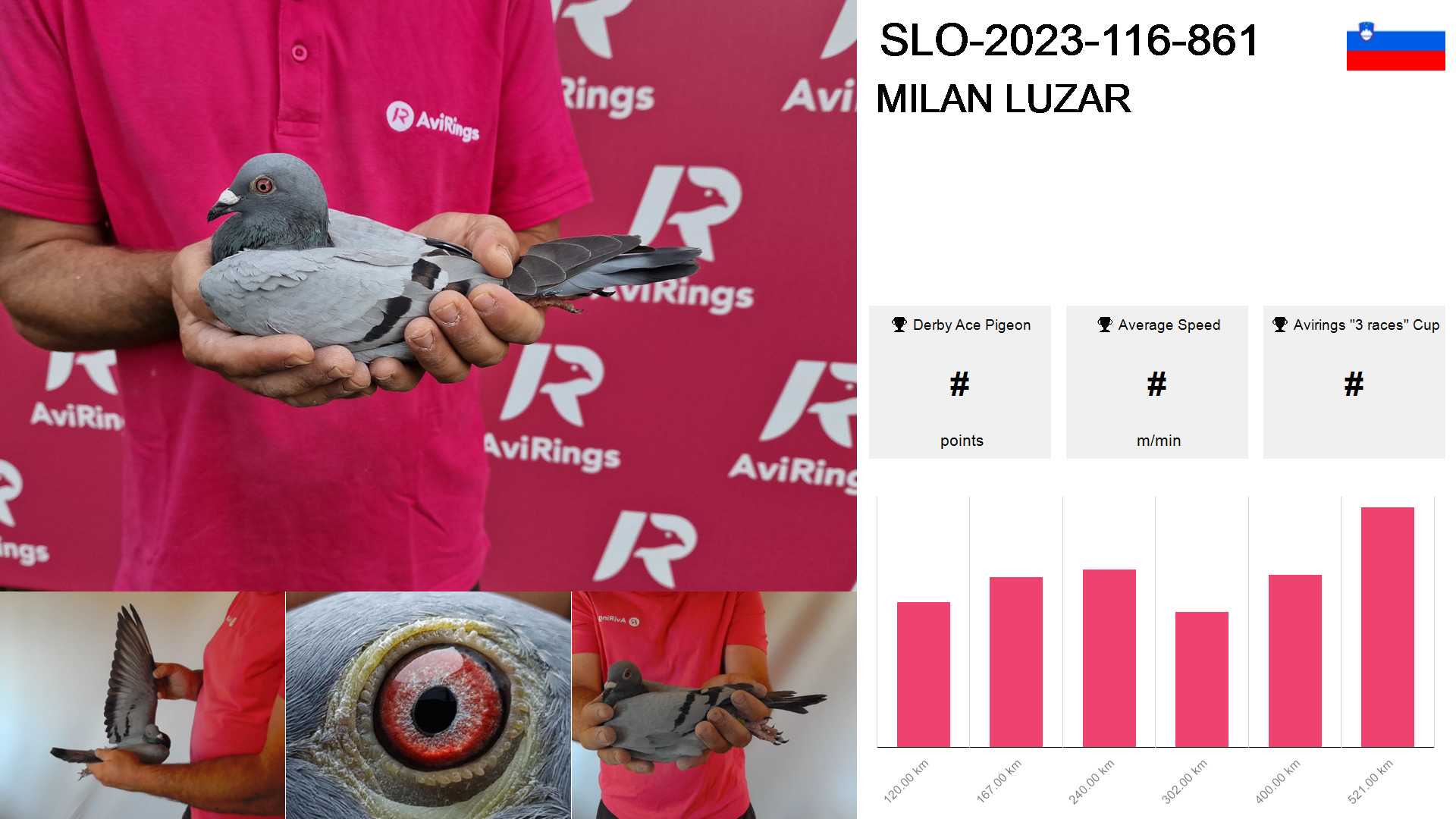 | Race | Position | Number of pigeons | Percent | Speed | Distance |