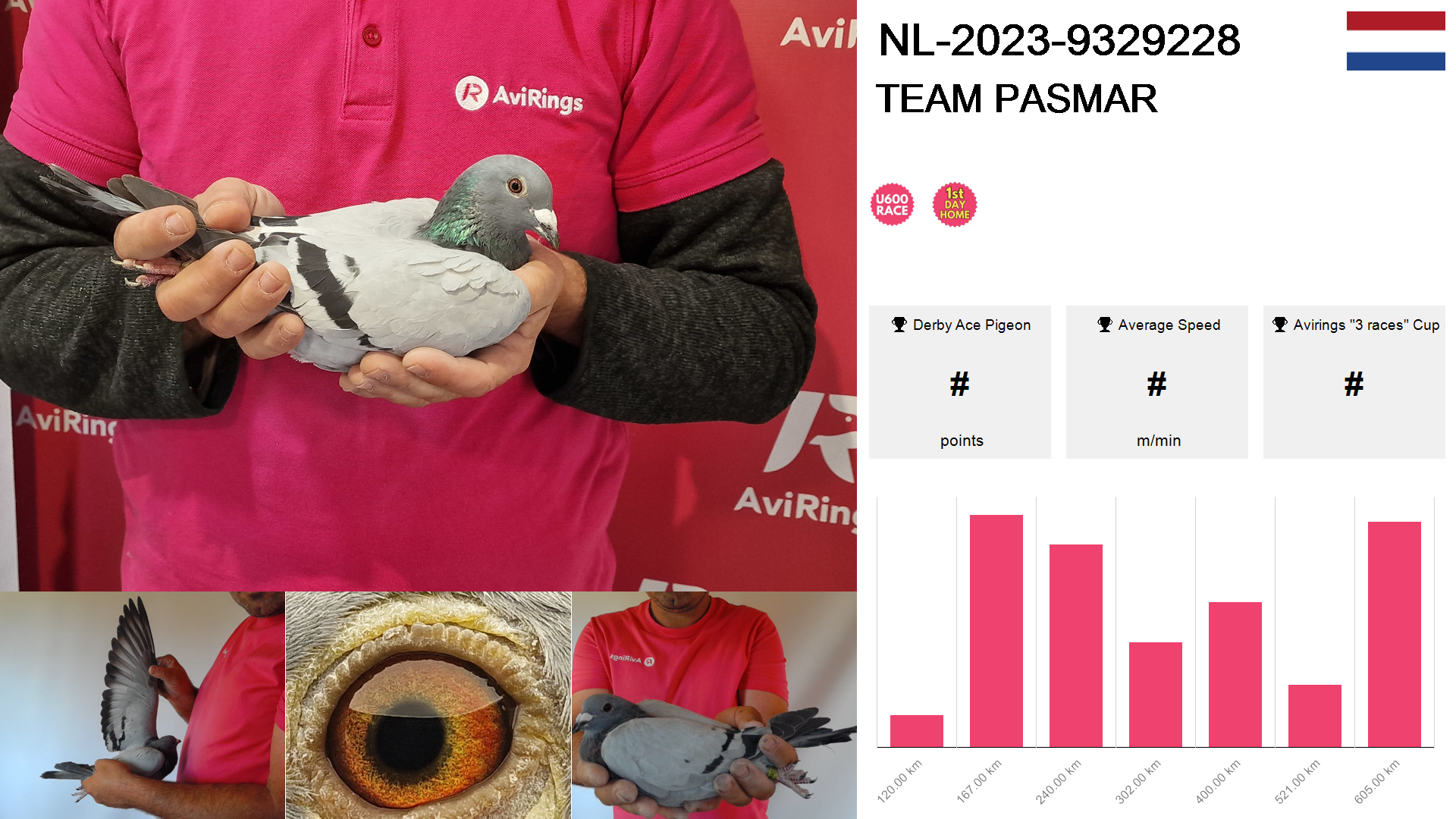 | Race | Position | Number of pigeons | Percent | Speed | Distance |