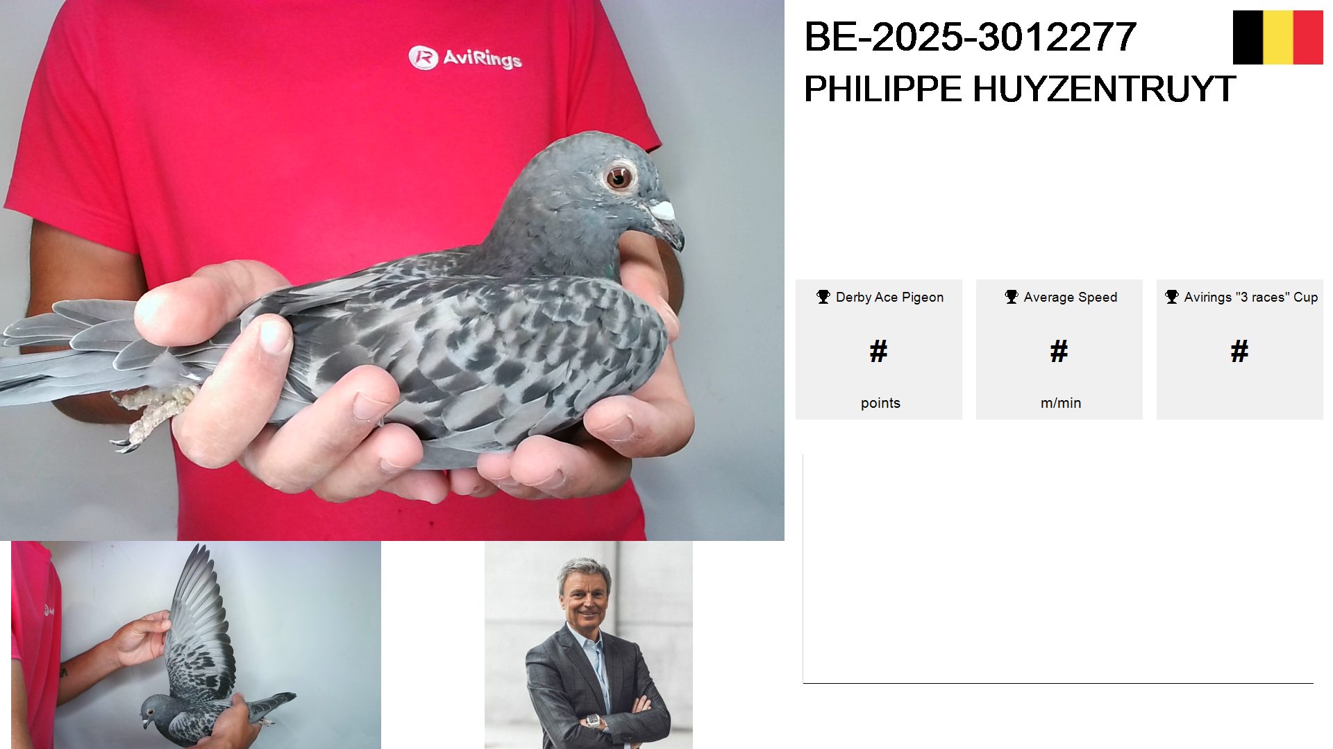 | Race | Position | Number of pigeons | Percent | Speed | Distance |