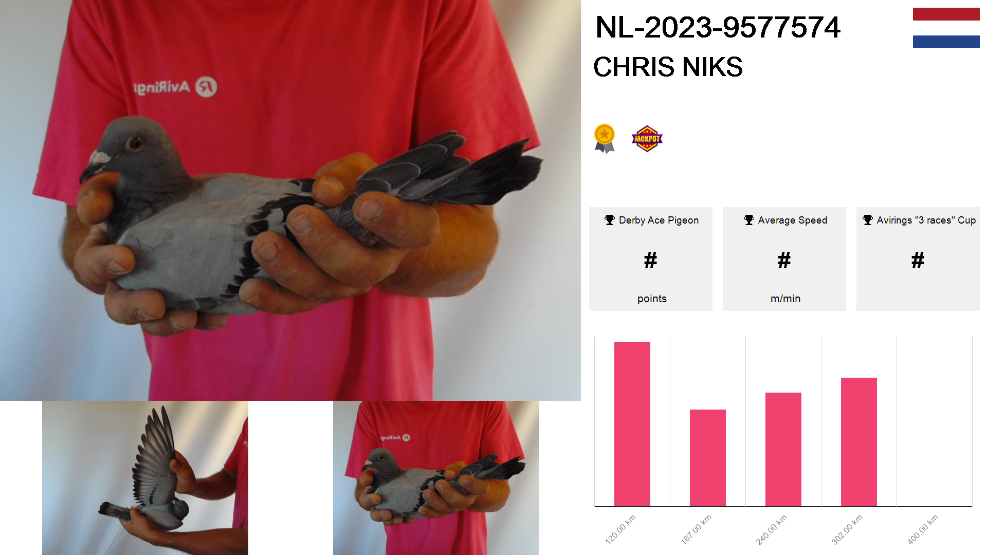 | Race | Position | Number of pigeons | Percent | Speed | Distance |