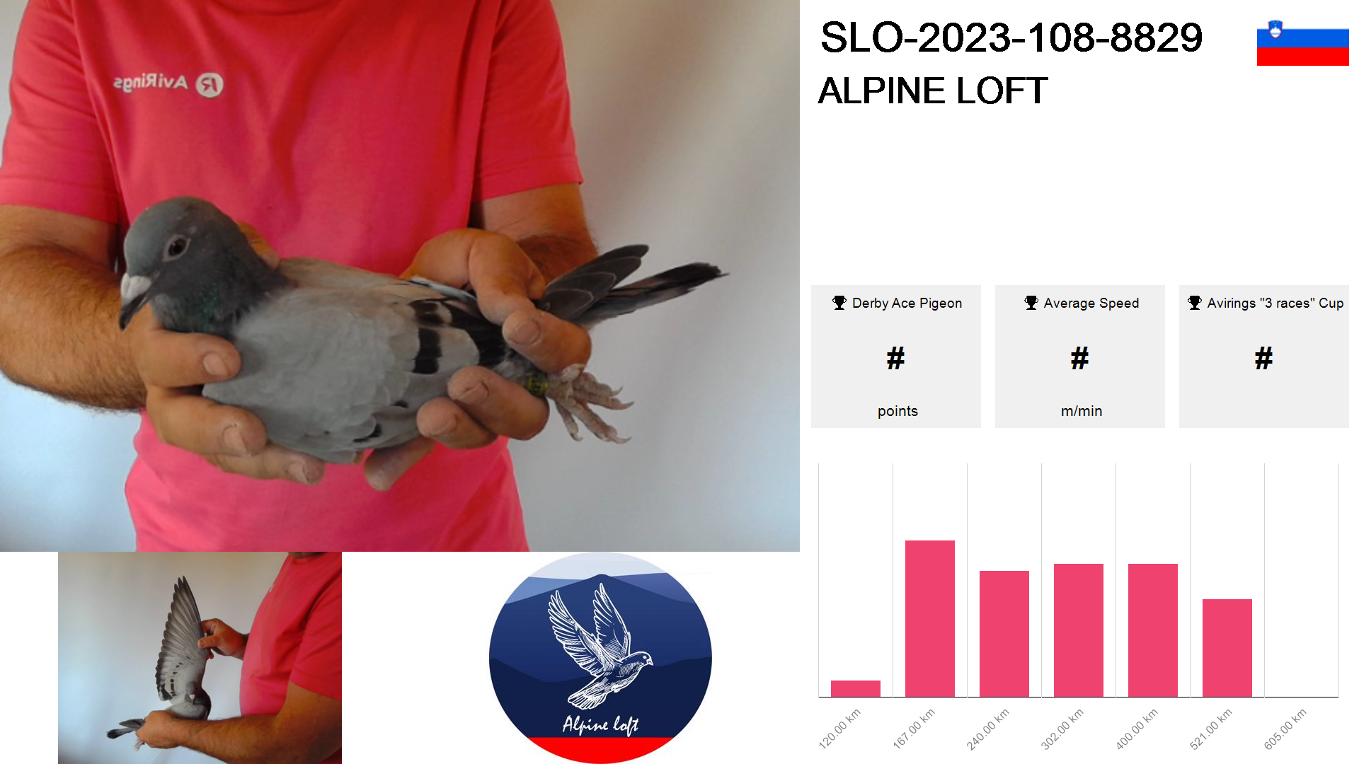 | Race | Position | Number of pigeons | Percent | Speed | Distance |