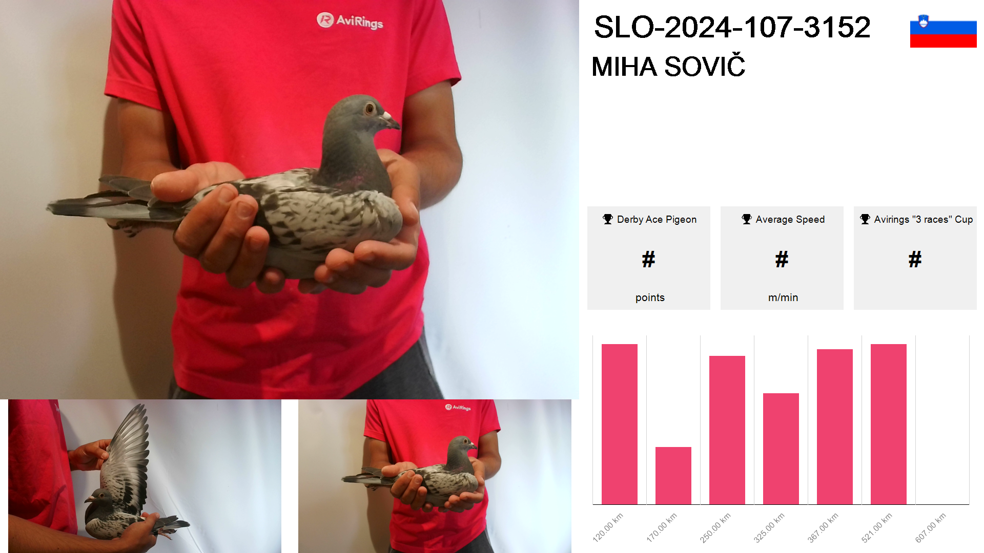| Race | Position | Number of pigeons | Percent | Speed | Distance |