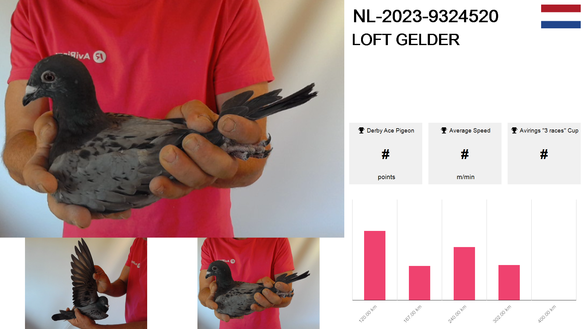 | Race | Position | Number of pigeons | Percent | Speed | Distance |