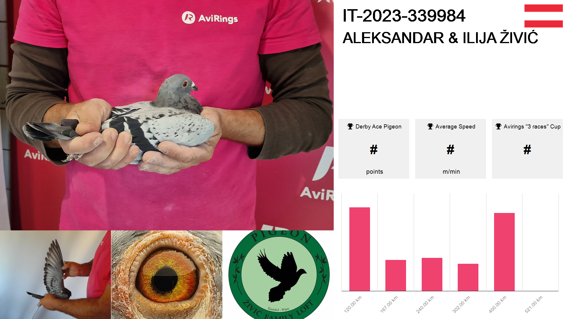 | Race | Position | Number of pigeons | Percent | Speed | Distance |